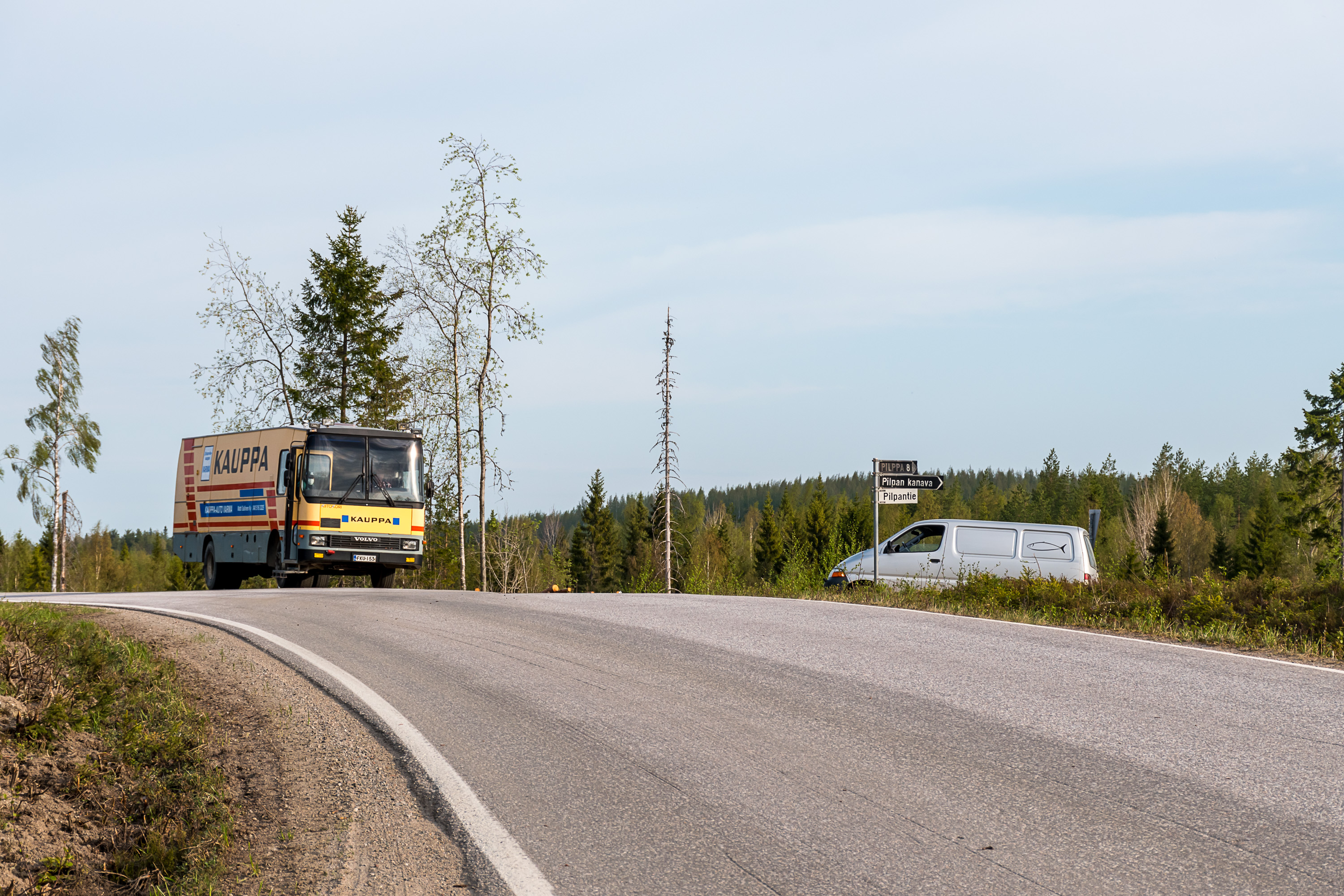 Если традиция передвижных библиотек в Финляндии до сих пор прекрасно сохраняется даже в городах, то автолавки (myymäläauto) сейчас — вымирающий реликтовый вид. Даже и обычным сельским магазинам-то сейчас сложно выжить, особенно, если они не входят в крупнейшие сети S или K, что уж говорить про автолавки. И тем не менее, они пока еще существуют, и мне автолавка впервые попалась спустя 6 лет после начала моих "исследований Финляндии". Произошло это в Хейнявеси на востоке страны, на региональной дороге 471 Савонлинна-Энонкоски-Хейнявеси, у поворота на деревню Пилппа.