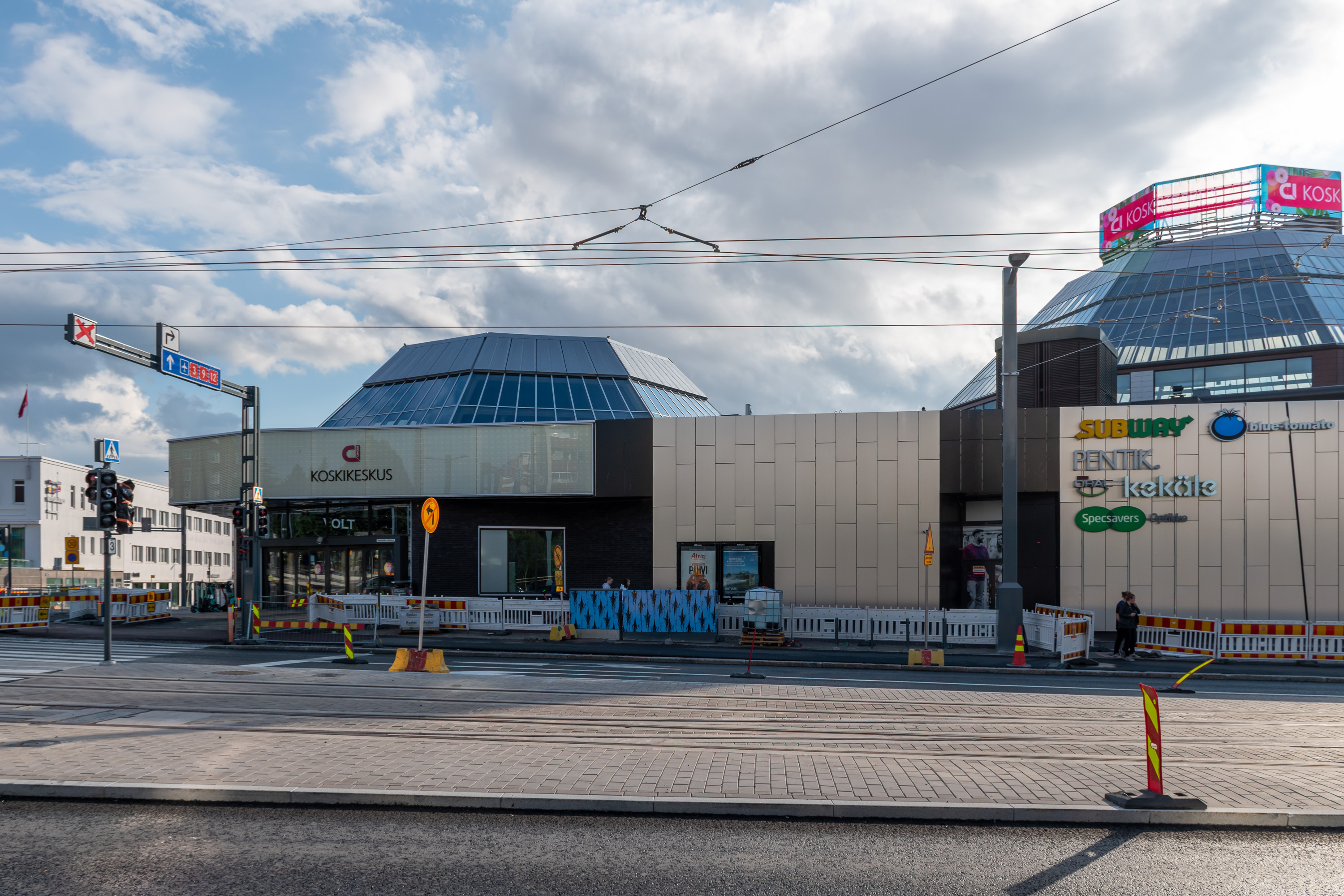 79. Koskikeskus ("Центр порогов" — в честь порогов Таммеркоски, одна из плотин на которых расположена прямо за ТЦ) — более старый (1988) ТЦ и меньше Ratina раза в полтора, хотя на момент постройки он был крупнейшим в стране. Надо думать, после переноса автовокзала эта трамвайная ветка будет обслуживать в основном именно эту пару ТЦ, которые стоят почти рядышком.