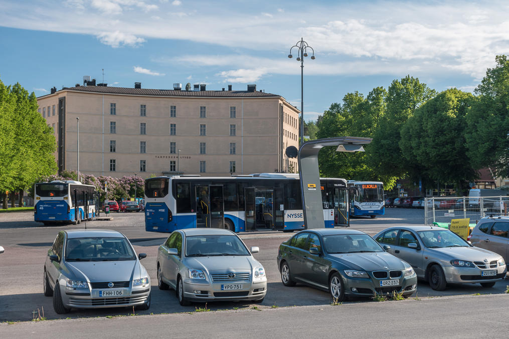 77. Автовокзал Тампере — почти ровесник железнодорожного, 1938 год. С 2000-х годов в финских городах автовокзалы активно переносятся к железнодорожным вокзалам и объединяются с ними; Тампере — один из совсем немногих городов, где этого пока что не произошло: между вокзалами тут 500-700 метров ходьбы. Как упоминалось выше, в перспективе таки планируется реконструкция ж/д вокзала и перенос автобусов туда, но пока что остается как есть. Посередине виден автобус OnniBus ("Счастьебус") — этот перевозчик, вошедший на рынок не так давно с очень комфортными двухэтажными автобусами и агрессивной тарифной политикой, стал де-факто основным автобусным перевозчиком Финляндии на дальних расстояниях.