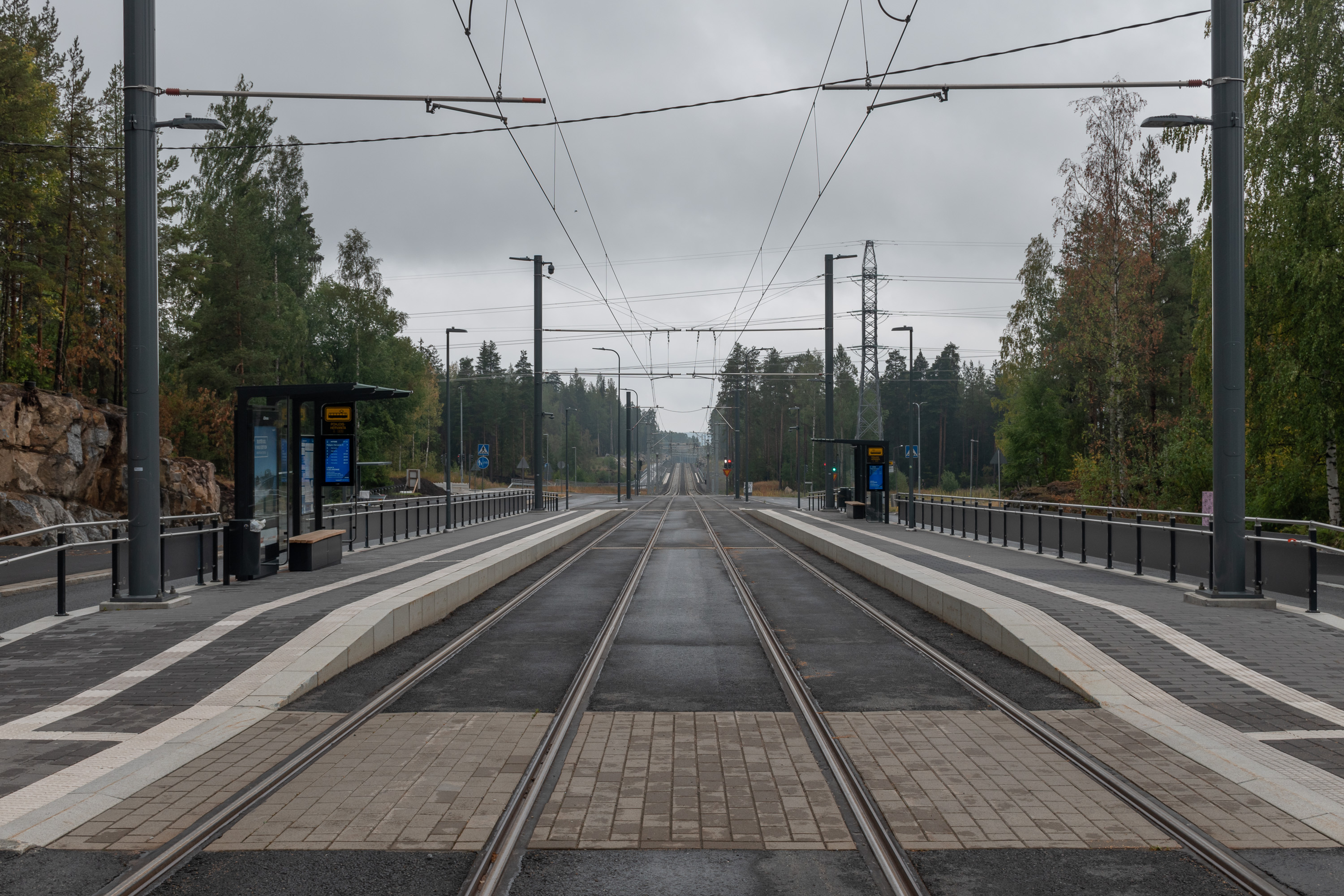 Немного смущает также, что, хотя трамвай почти полностью передвигается на выделенках, да и остановки у него чуть реже, чем были раньше у автобуса, по факту-то он ничуть быстрее автобуса не стал — те же 22-23 мин от Херванты до центра. Ну да, будет больше комфорта, меньше шансы, что придется стоять всю дорогу, и в пробках стоять не будет, да и 22-23 мин в любом случае кардинально уменьшить было бы сложно, но все же от современного трамвая ожидаешь несколько другого.