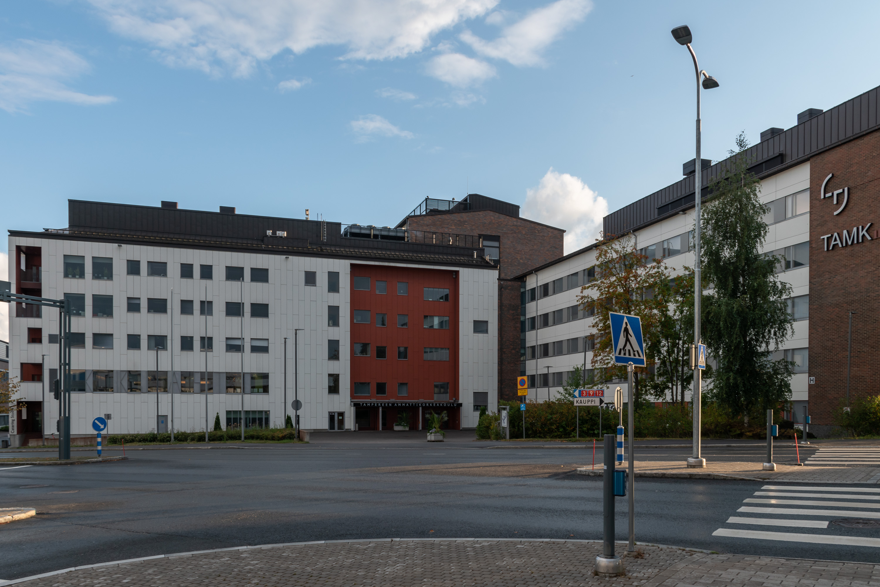 99. А по другую сторону через дорогу от больницы и трамвайной остановки — главный корпус Тамперского политехнического института TAMK (Tampereen ammattikorkeakoulu). Политехнические институты (они же университеты прикладных наук) в Финляндии дают высшее образование, но более, так сказать, с практическим уклоном и менее престижное по сравнению с полноценными университетами. В TAMK обучается около 10 тыс. студентов; помимо нескольких корпусов в Тампере, у него есть филиалы в нескольких мелких городах области Пирканмаа.