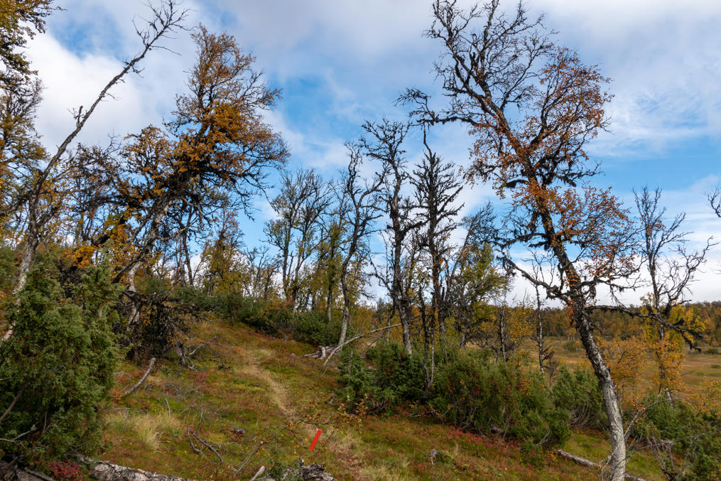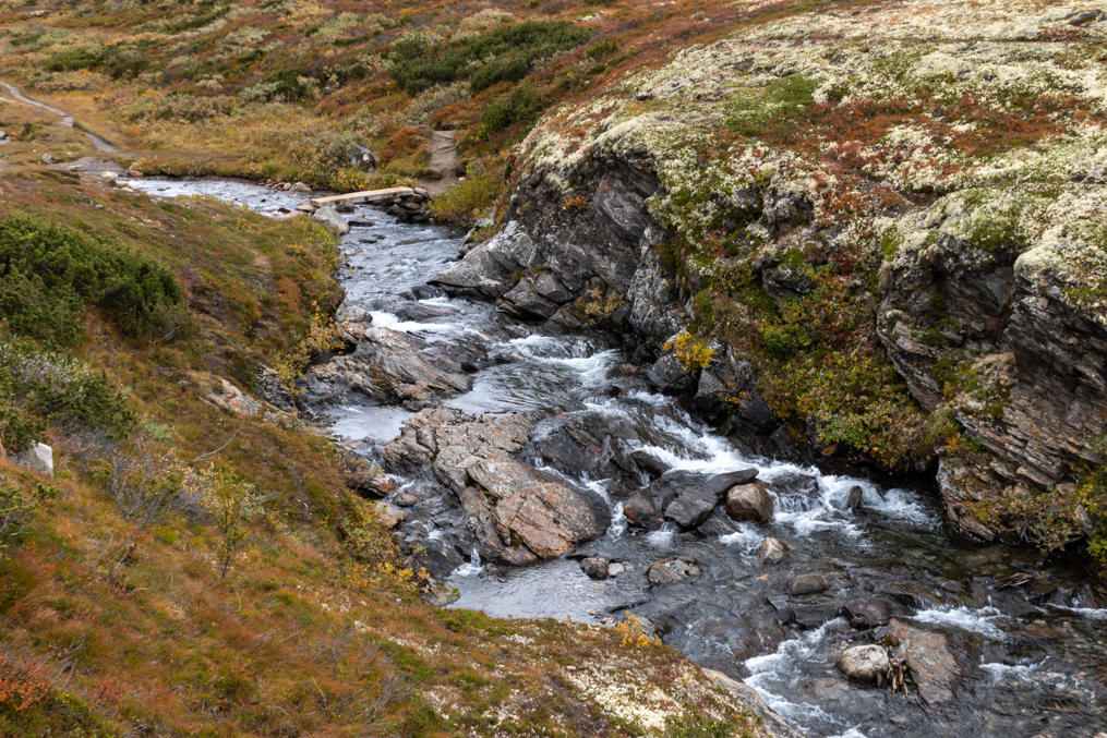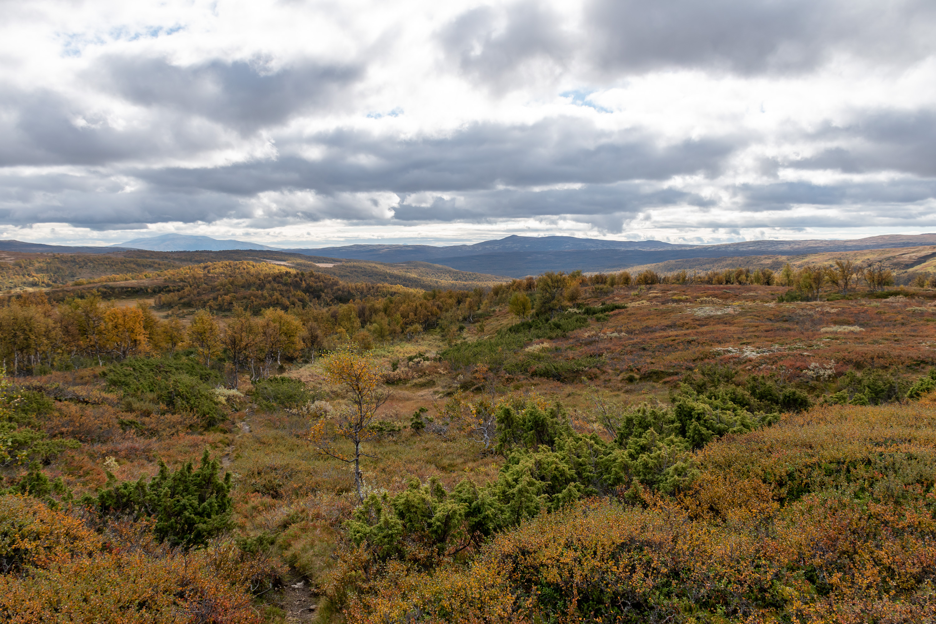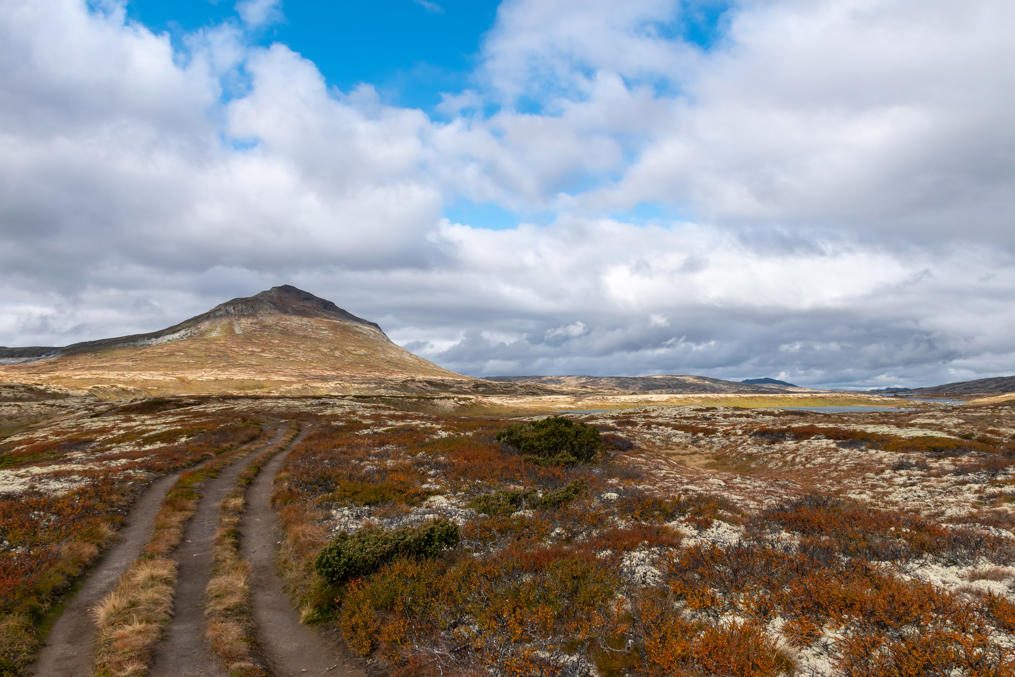 У меня, разумеется, не было намерения идти 320 км и даже пересекать горы целиком (потом добираться с другой стороны обратно к машине, объезжая весь горный массив каким-то образом — наверное, на несколько дней вышло бы приключение), так что в мои намерения входило просто подняться с юга до горы Форолльхогна и обратно. Даже о таком маршруте найти информацию на удивление непросто. В Норвегии почему-то, в отличие от Финляндии и Швеции, нет какого-то единого сайта с подробной информацией о национальных парках, с маршрутами и т. п. Ну то есть сайт-то есть, но для Форолльхогны, как и для многих других менее популярных нац. парков, там одна страница с самой общей информацией, а ссылки на подробности не работают — не только в английском, но и в норвежском варианте страницы. На практике искать пешие маршруты в Норвегии можно на сайте ut.no — неплохой, но маршруты добавляются там посетителями, многого нет, и на Форолльхогну там описан вроде бы только маршрут с севера, со стороны Тронхейма. Тропу со стороны юга я в итоге искал сам по карте. Идти от машины до горы где-то 7 км в одну сторону и так же обратно, с набором высоты менее 500 м.
