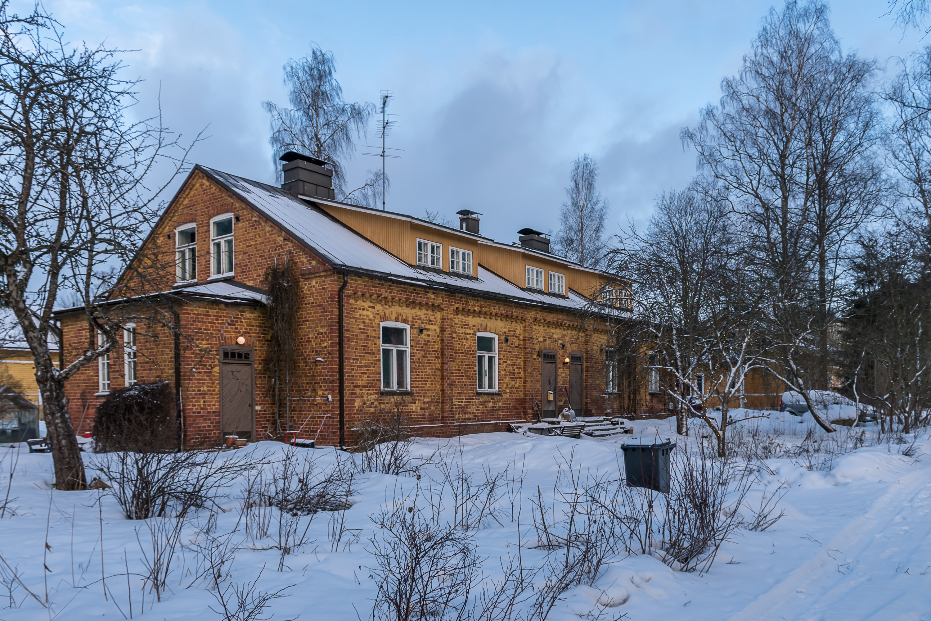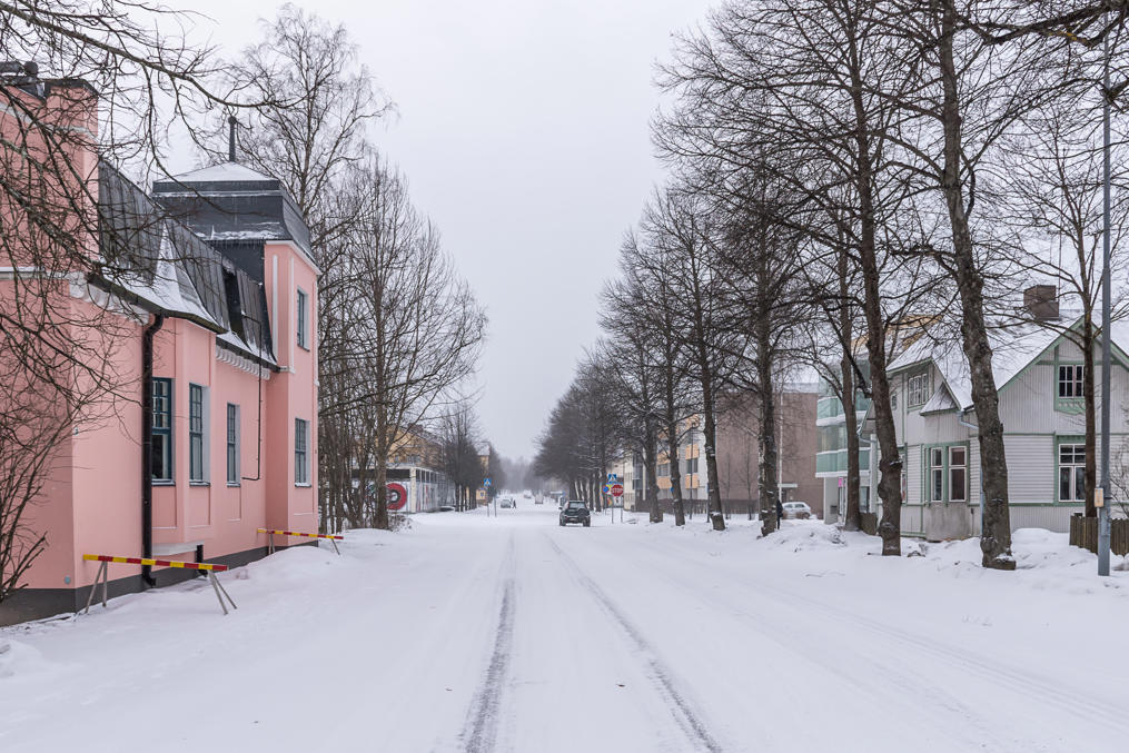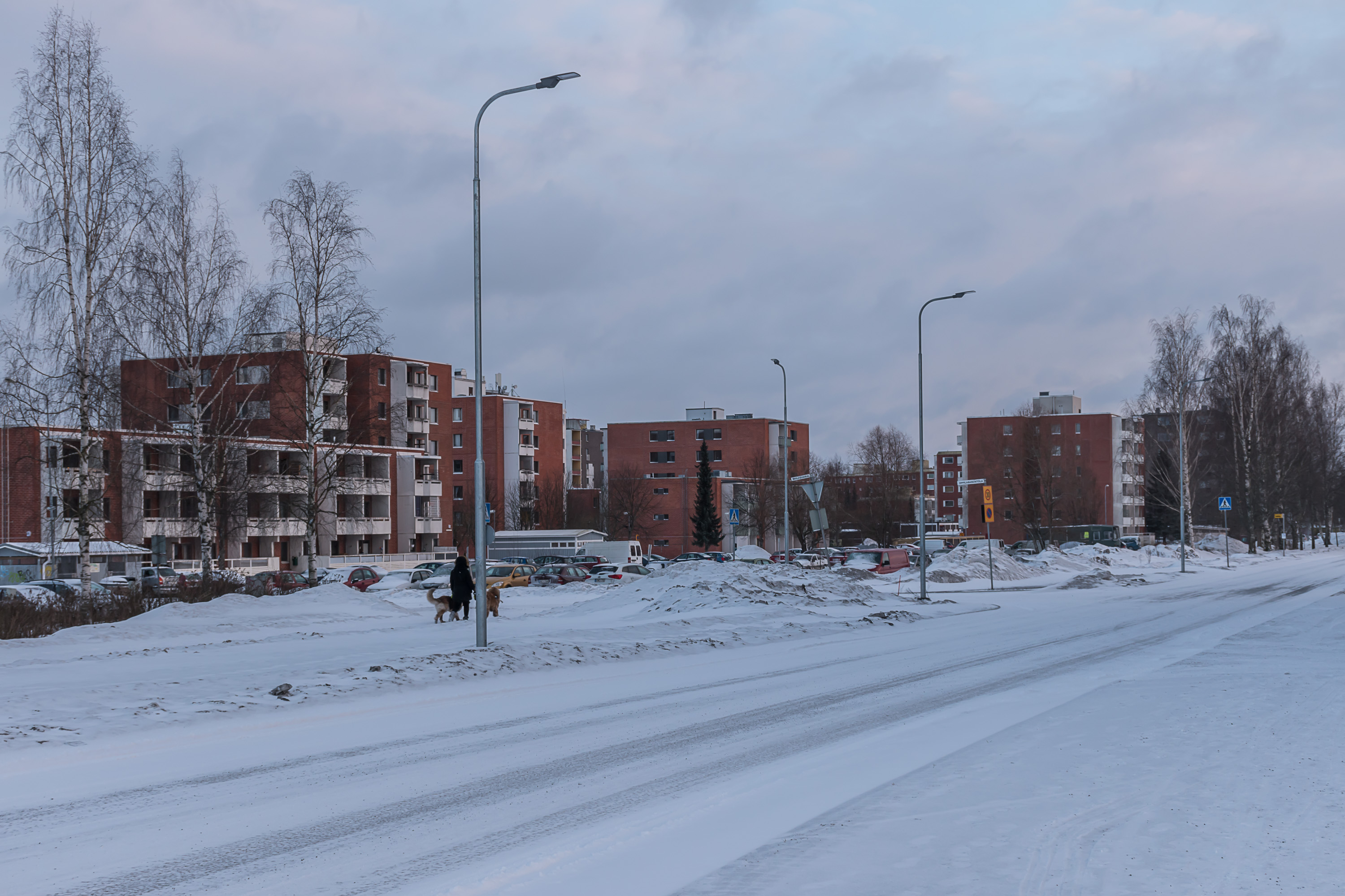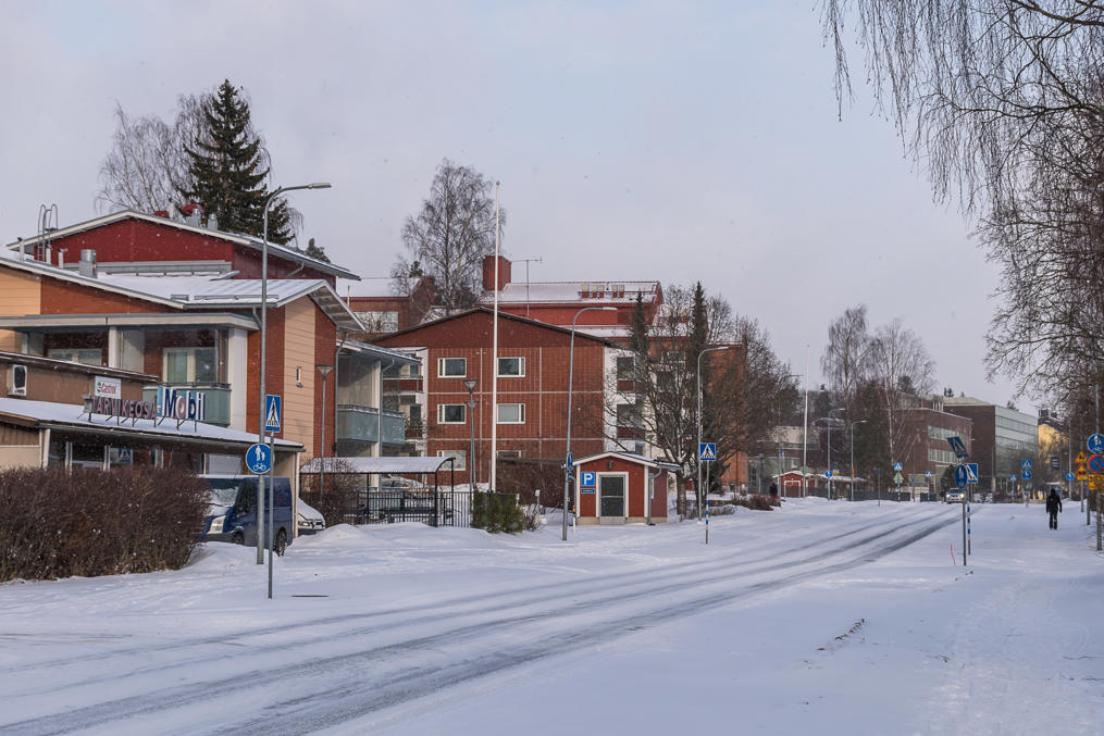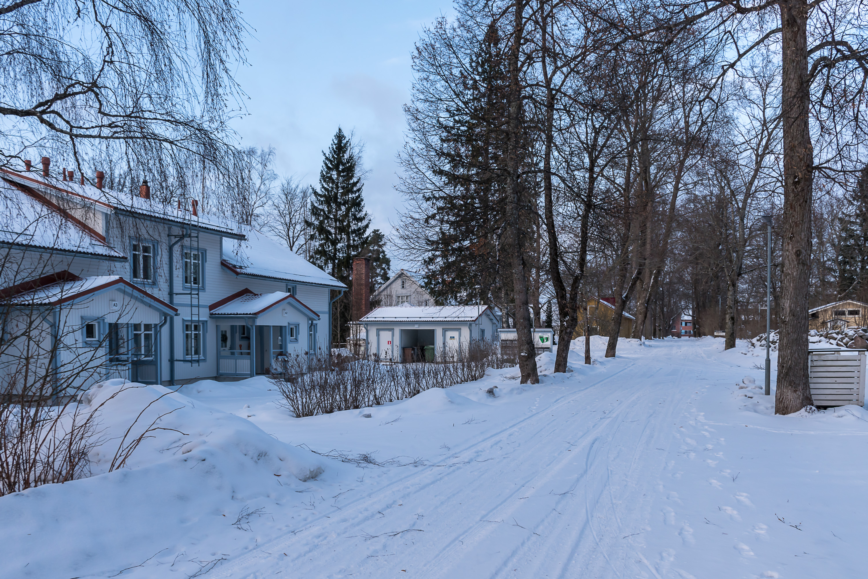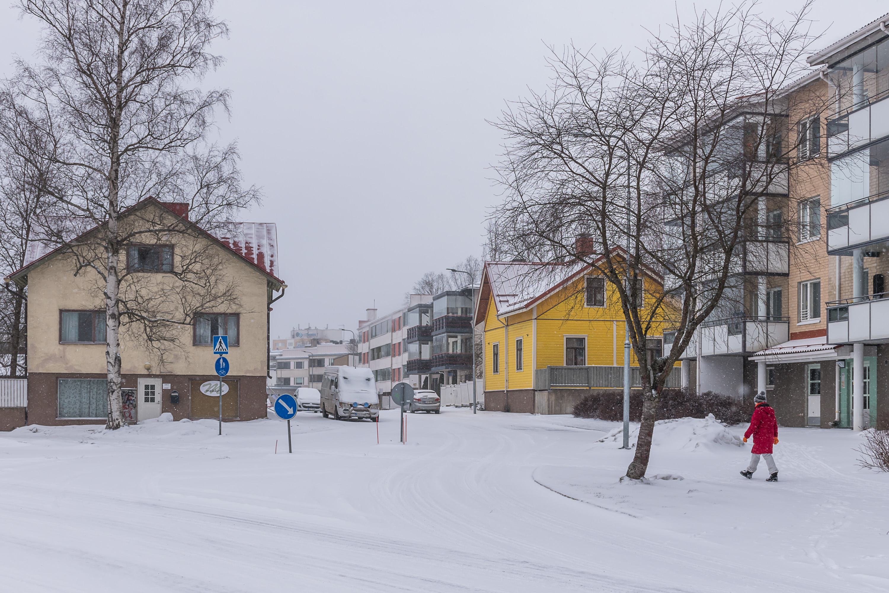 12. Улочки Рийхимяки, присыпанные свежим белым снежком. В центре, в основном довольно обыденной современной застройки, часто попадаются старые деревянные домики и скромные особнячки.
