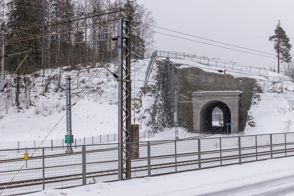 62. Совсем недавно, в 2017, Тамперское и Петербургское направления соединили напрямую коротким путем в обход всей станции. Для этого понадобилось пробить в скале такой вот коротенький туннель на 70 метров (Вуорельский, Vuorelan tunneli), чтобы не сильно мешать жилому району частных домов выше.
