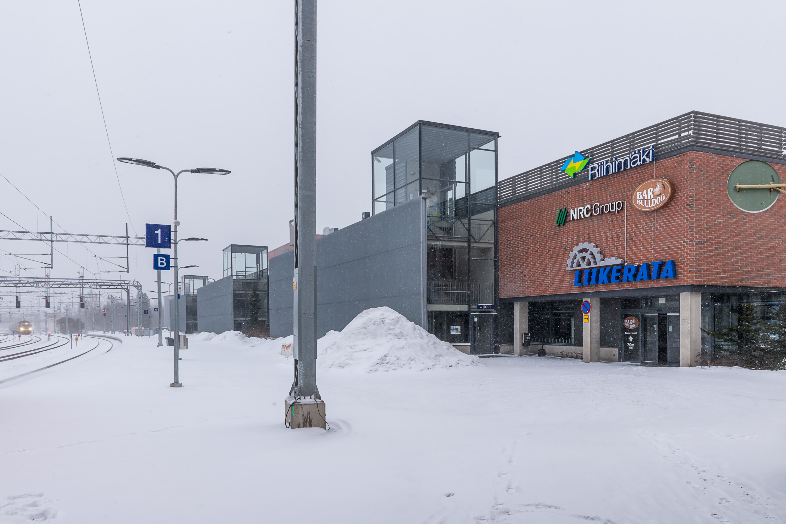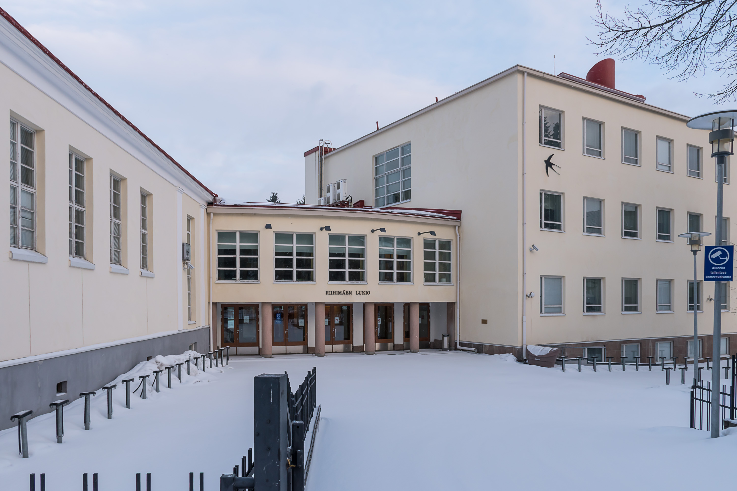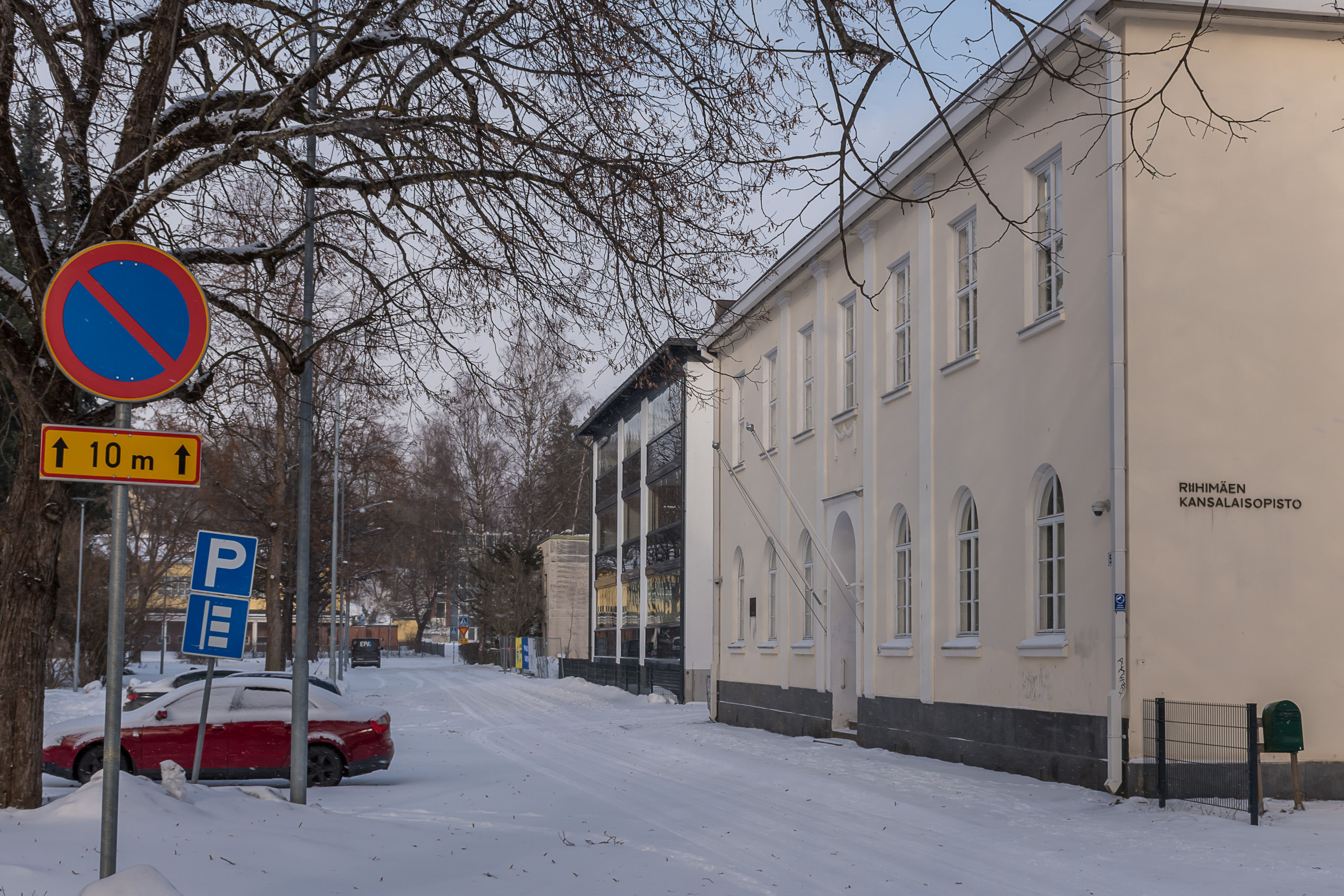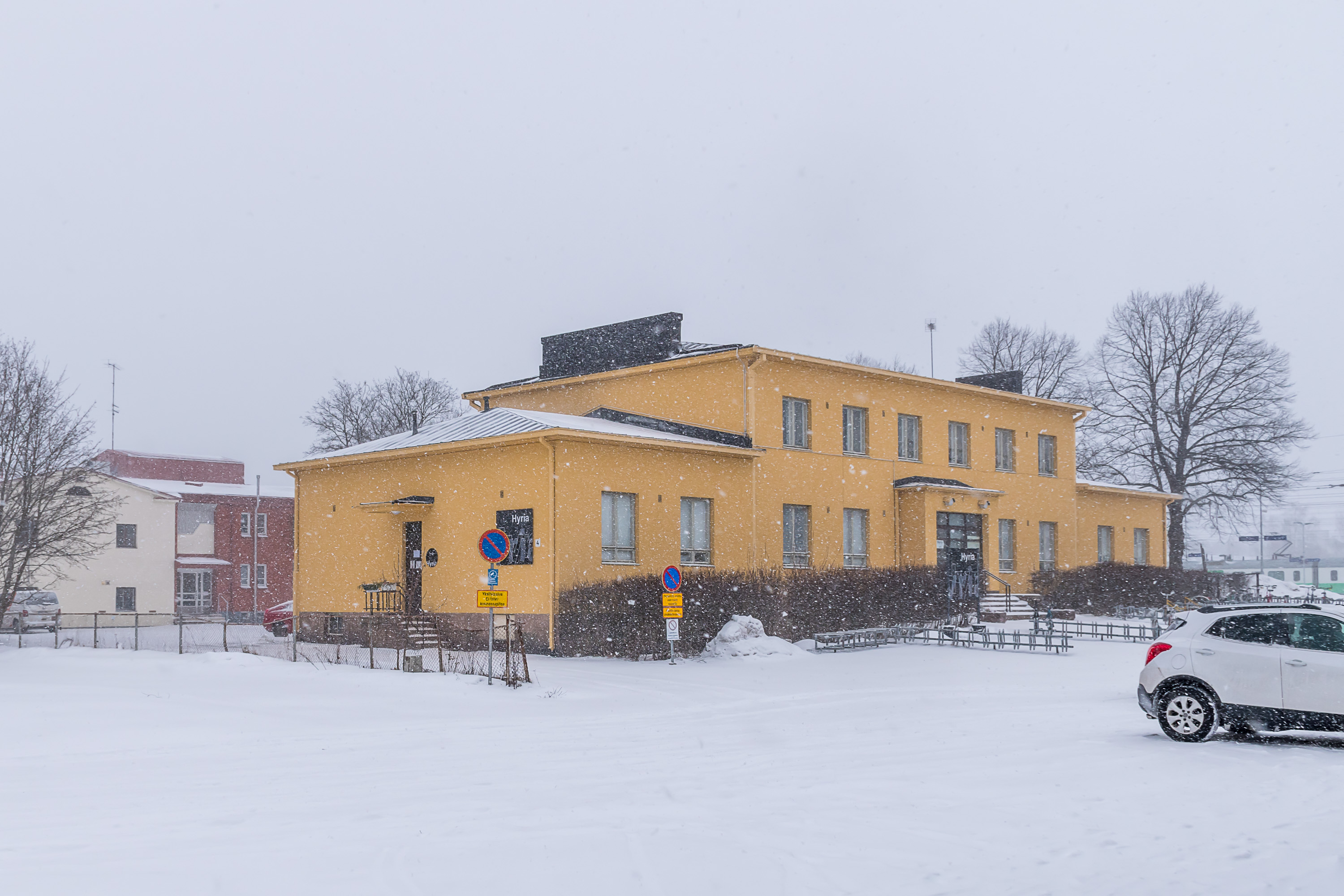 9. В здании с другой стороны от вокзала, возможно, тоже изначально относившимся к станции, располагается один из филиалов Hyria, общего для Хювинкяя, Рийхимяки и нескольких других окрестных муниципалитетов ПТУ. Город Хювинкяя (Hyvinkää) — так же выросший из узловой ж/д станции, как и Рийхимяки, но раза в полтора больше по населению — располагается совсем недалеко на юг, буквально в десятке километров.