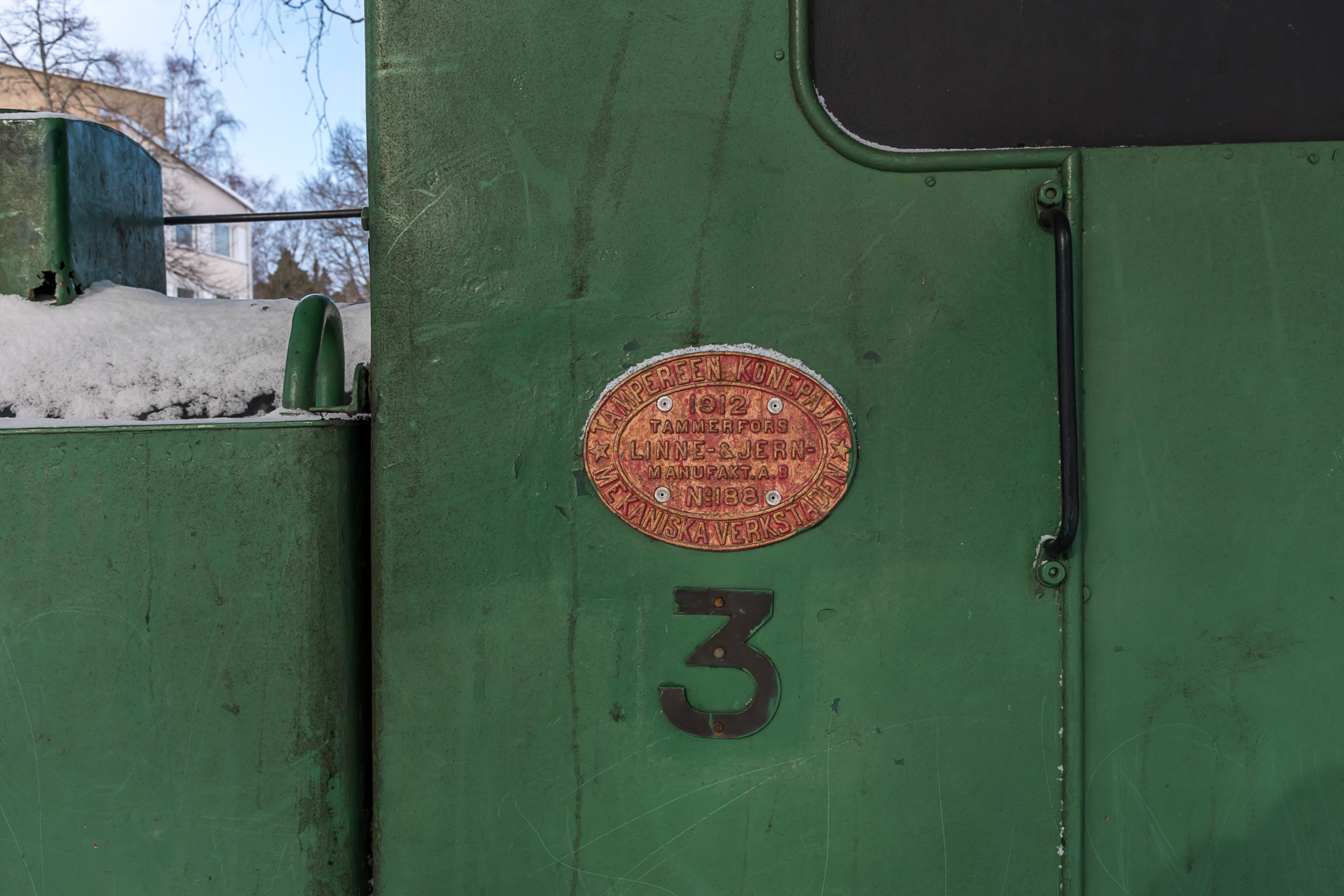 23. Из подвижного состава сохранился вот этот паровоз, третий по счету, тоже произведенный в Тампере на Tampella в 1912; прицепленный к нему пассажирский вагон, построенный в 1911 на Хельсинкской судоверфи; и еще несколько пассажирских вагонов, отданных на Ковйокскую музейную узкоколейку.
