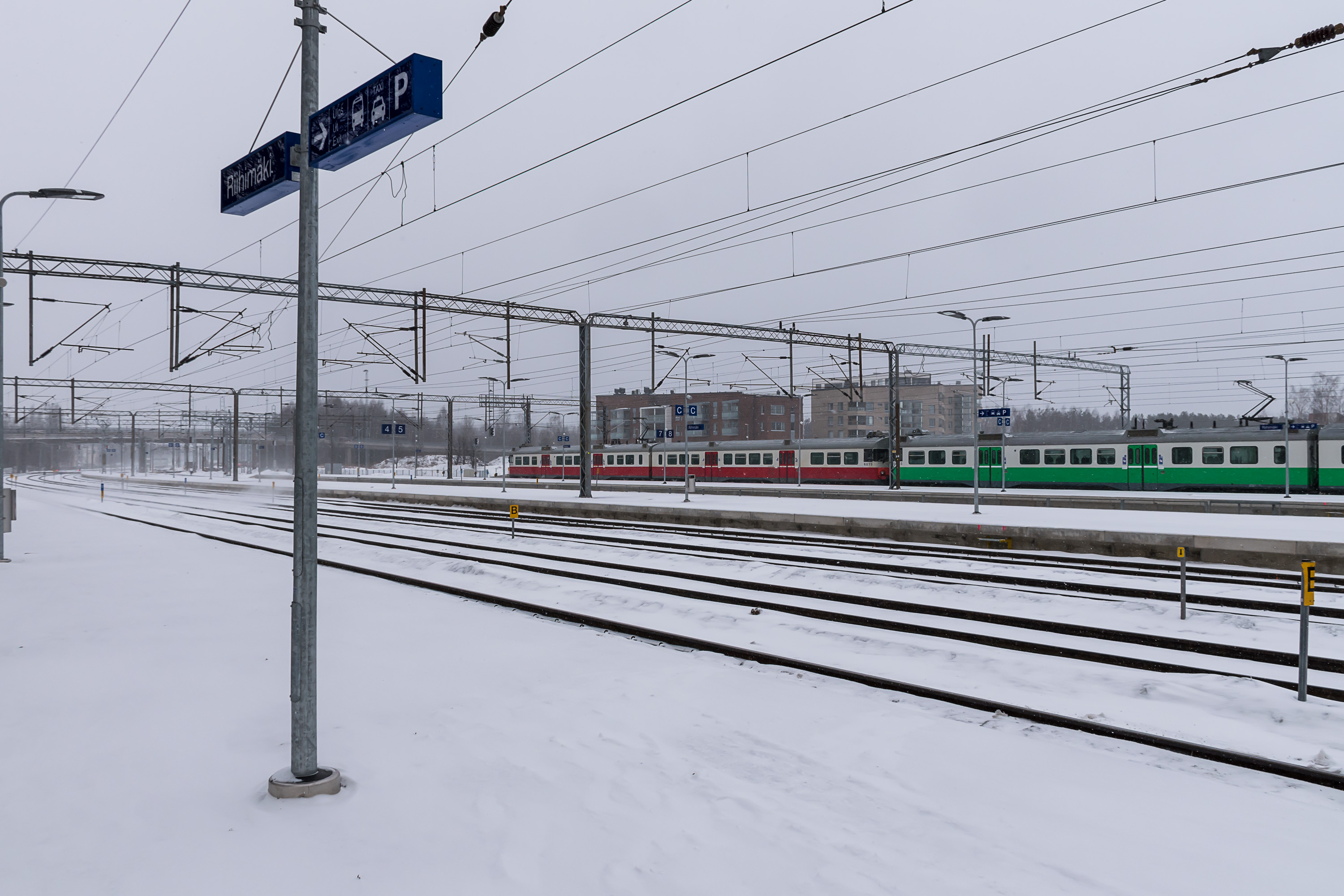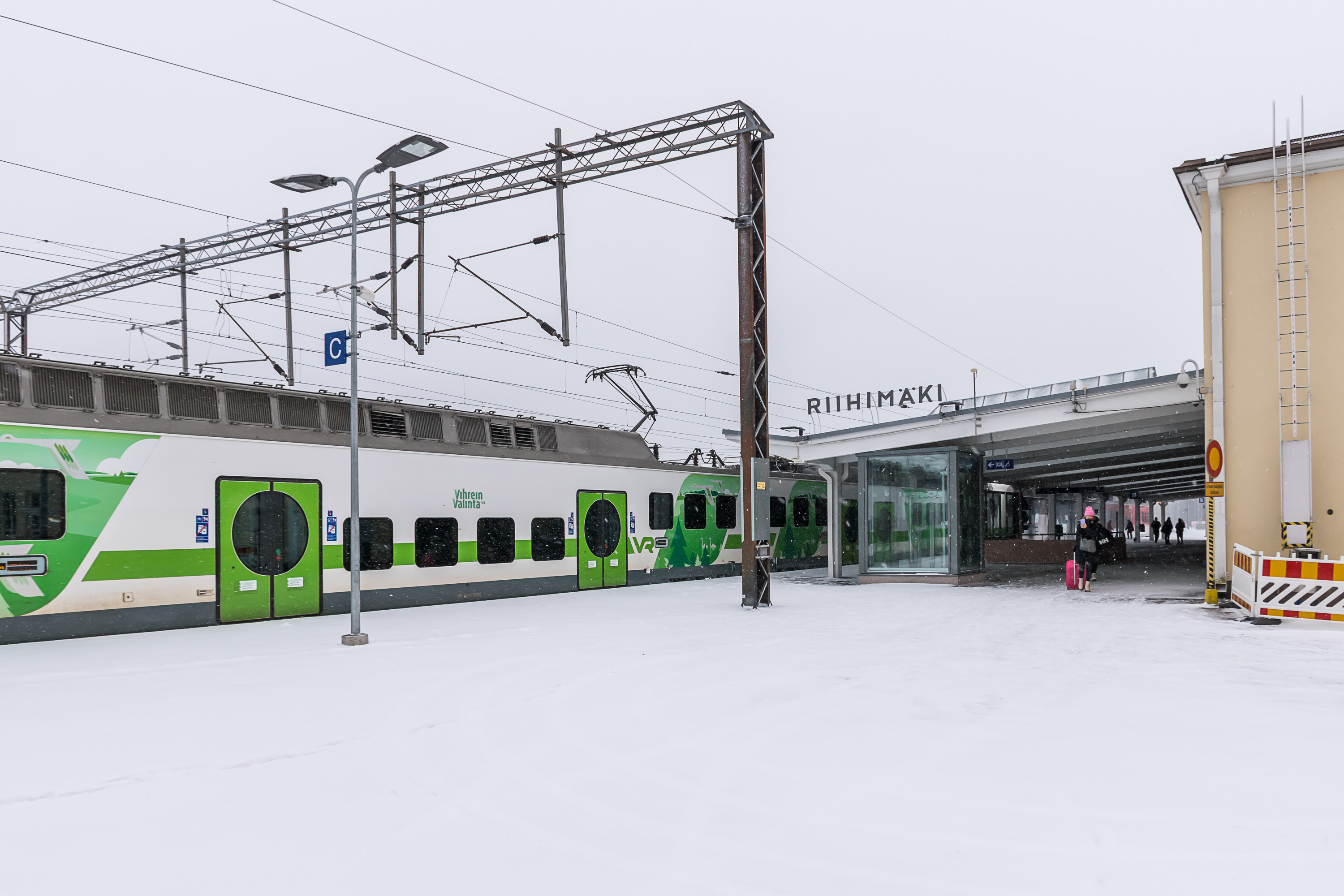 Я же приехал погулять в Рийхимяки в марте 2021 года, живя уже не под Хельсинки, а в Тампере. Приехал все равно на этой R-электричке — некоторые из рейсов которых за Рийхимяки идут до самого Тампере, останавливаясь в разных небольших городках и поселочках. Так что пойдем прогуляемся по Рийхимяки мартовским, но по погоде совершенно зимним днем.