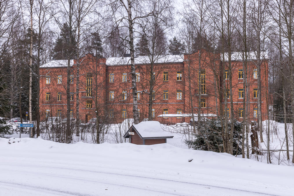 51. Рядом с тюрьмой находятся казармы, одно из старых зданий которых видно с дороги. Как уже говорилось, здесь долгое время был расквартирован Связной полк Оборонительных сил Финляндии. Ныне он не существует как самостоятельная единица, но военные покидать Рийхимяки не собираются.