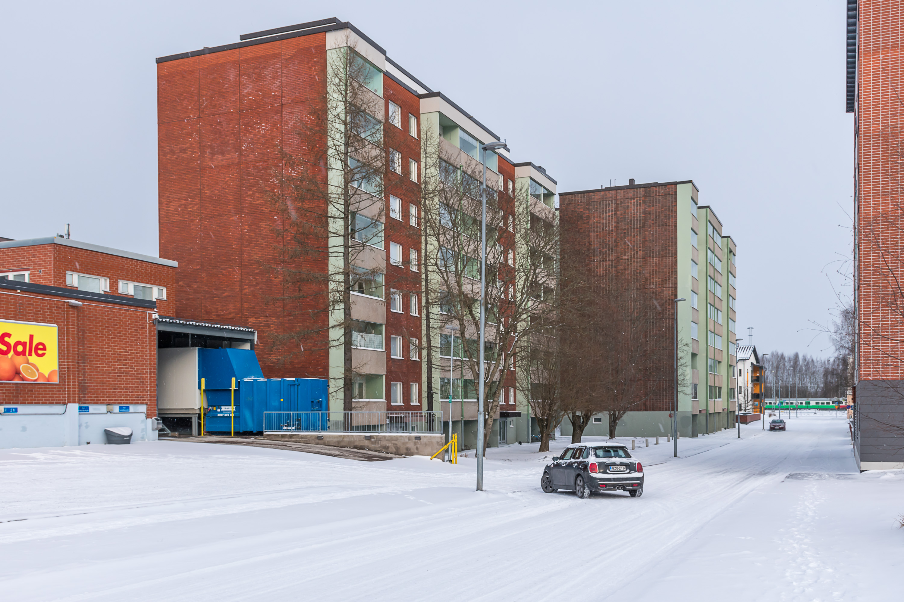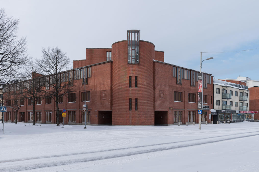18. Это построенное в 1984 году модернистское здание на Тавастской можно назвать одной из колыбелей финского IT: оно было построено для компании Kunnallistieto (фин. Муниципальная информация) — основанной в 1970-х сразу тремястами финскими муниципалитетами компании для предоставления этим муниципалитетам IT-услуг. Тогда тут стояли большие ЭВМ, где, наверное, работало программное обеспечение для больниц или еще чего-нибудь муниципального. В наши дни потомком Kunnallistieto является IT-аутсорсер CGI Suomi, принадлежащий теперь канадцам. CGI — одна из крупнейших IT-компаний страны, с филиалами во многих городах, и в Рийхимяки до сих пор тоже, но уже не в этом здании; с этих площадей они съехали в 2017.