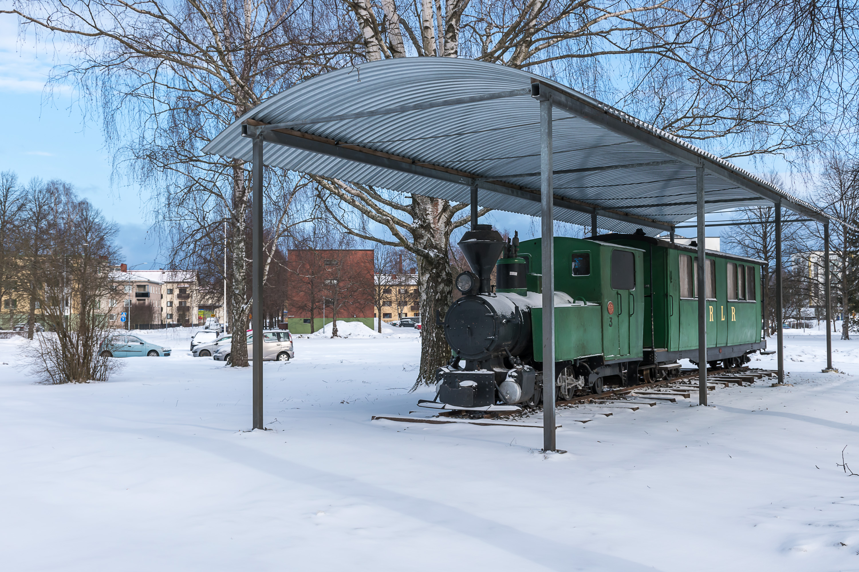 22. Здесь в укромном месте, в небольшом парке уже за пределами центра, располагается весьма интересный памятник — локомотив и вагон узкоколейной железной дороги Рийхимяки-Лоппи (Riihimäen-Lopen rata). Строго говоря, до самого села Лоппи она, правда, никогда не доходила.