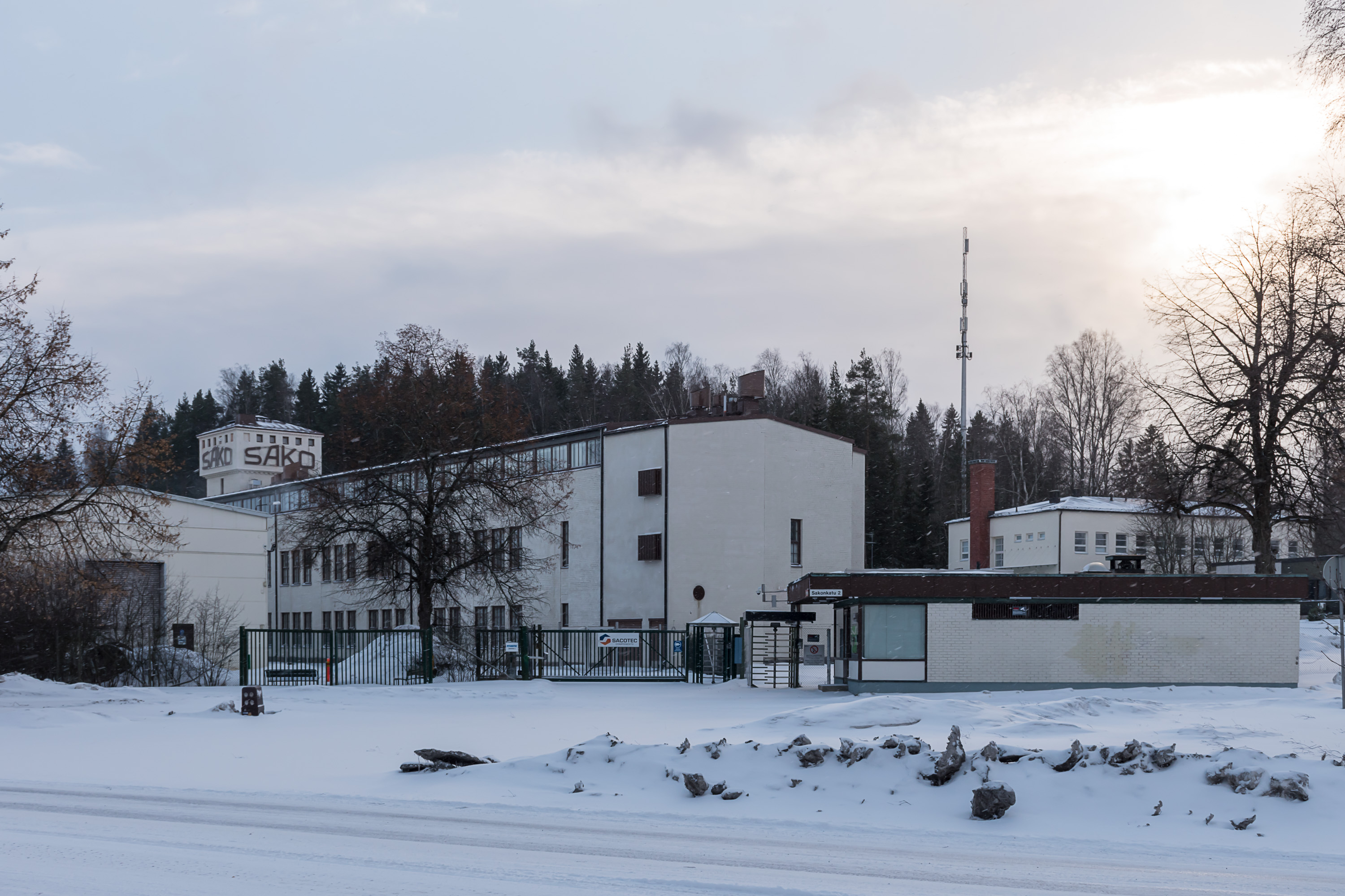 40. Пойдем обратно от стекольной фабрики в сторону центра. По пути встречается еще одно значимое местное предприятие, оружейная фабрика Sako. Она основана в 1921 году, и название изначально расшифровывалось как Suojeluskuntain Ase- ja Konepaja Oy — ООО Оружейная и машинная мастерская Охранных отрядов (шюцкора). Sako действует по сей день, хотя принадлежит с 2000 итальянской Beretta, и производит стрелковое оружие и боеприпасы к нему, как для финляндской армии, так и для открытого рынка.