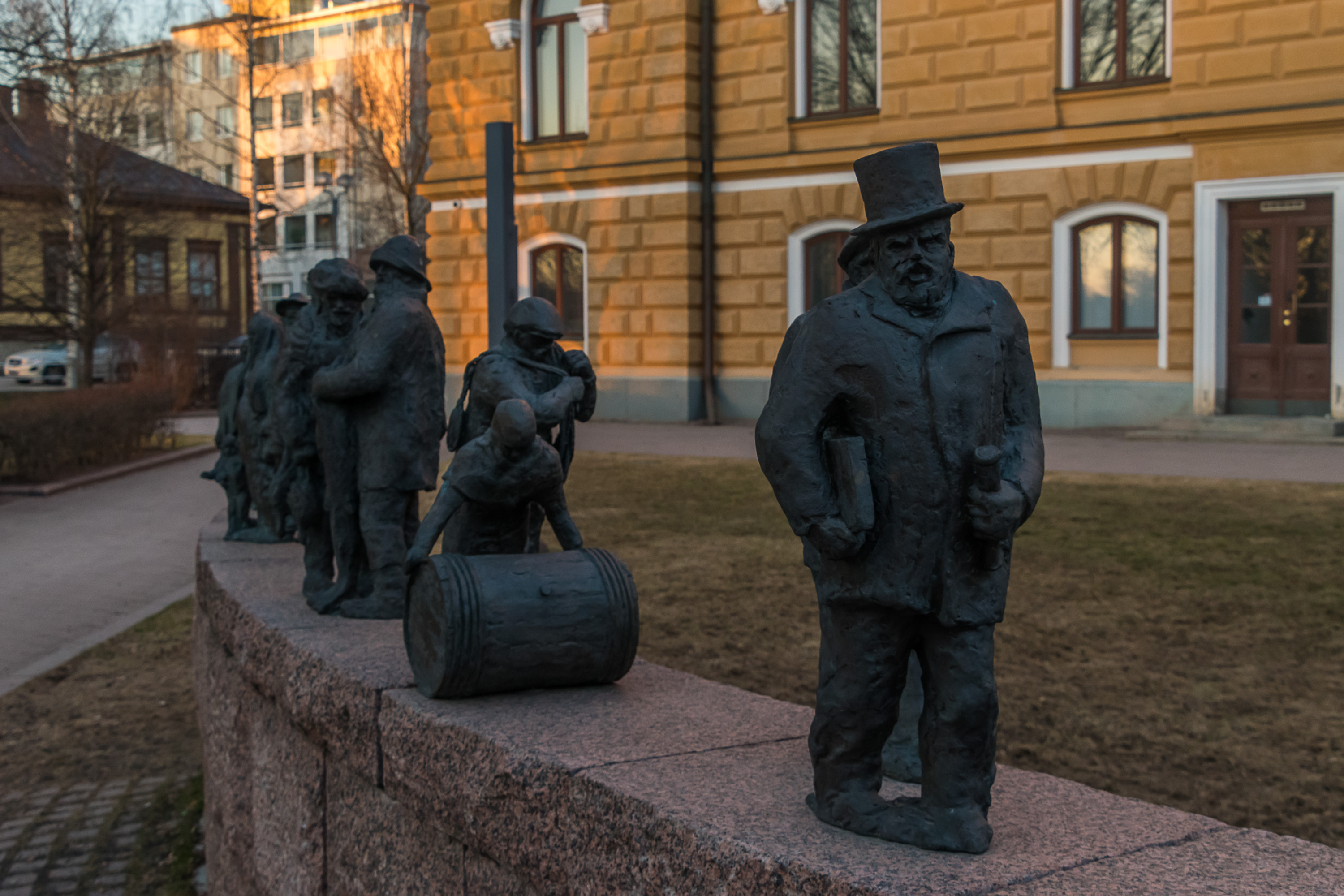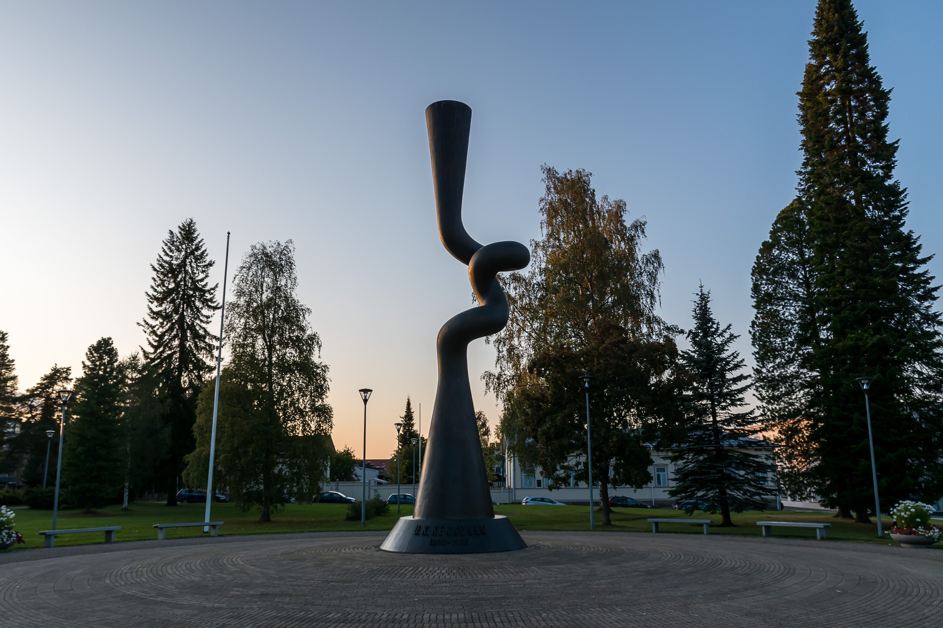 26. В сквере рядом с церковью стоит необычный памятник. Это памятник, ни много ни мало, президенту Кекконену, и называется он "Великое время" (Suuri aika). Открыт в 1990, спустя несколько лет после смерти Кекконена, в его любимом городе. Памятников Кекконену в Финляндии вообще не очень много, и из тех, что есть, в форме обычной статуи — только один, в Раахе.