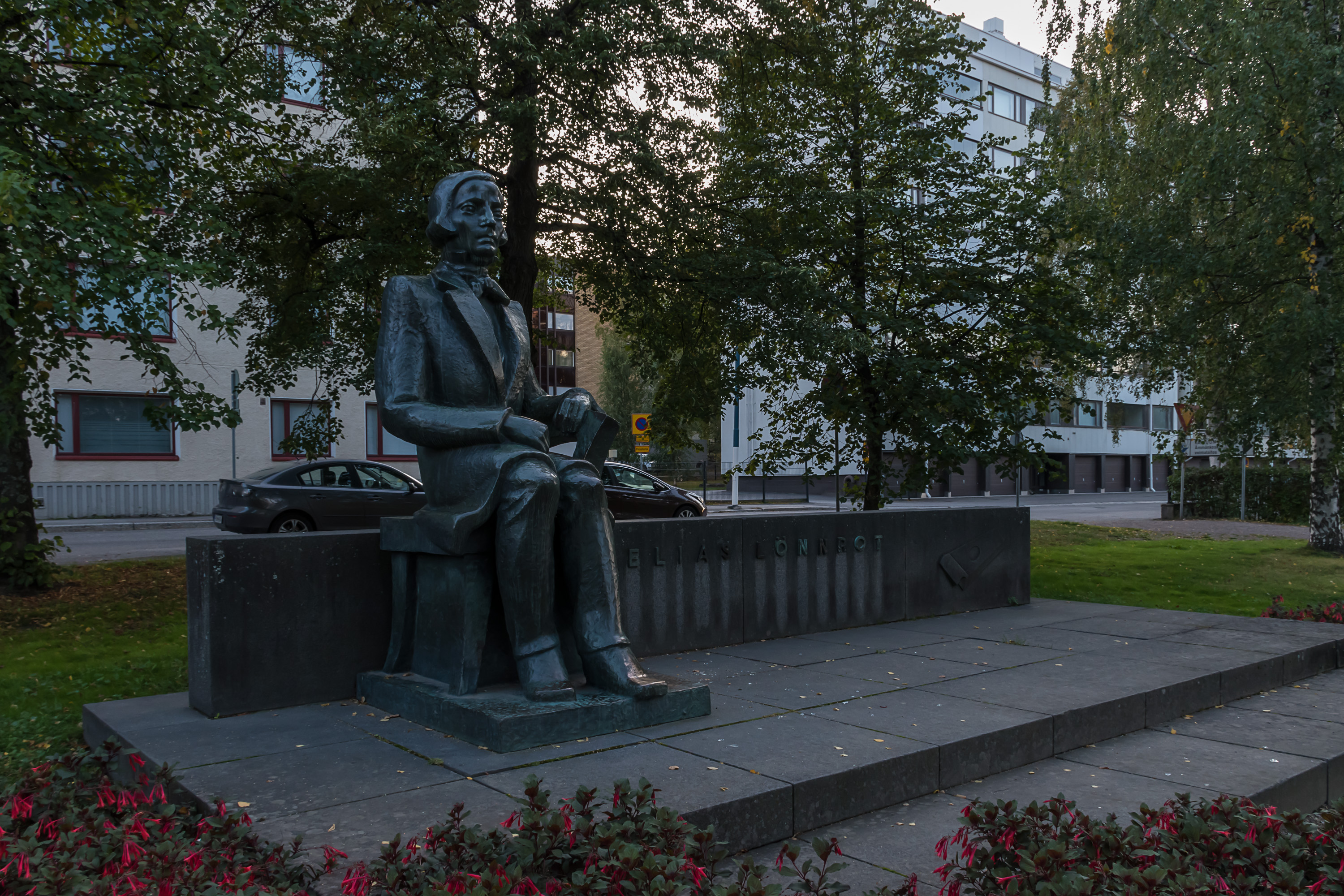 33. Идем к реке. На улице над набережной — памятник Элиасу Лённроту, автору "Калевалы", который, как мы говорили выше, проработал в Каяани уездным врачом двадцать лет, использовал эти места, как базу для своих этнографических поездок, и именно здесь и написал свою "Калевалу".