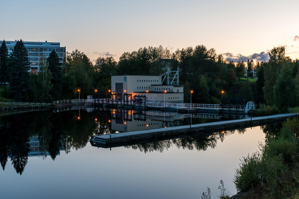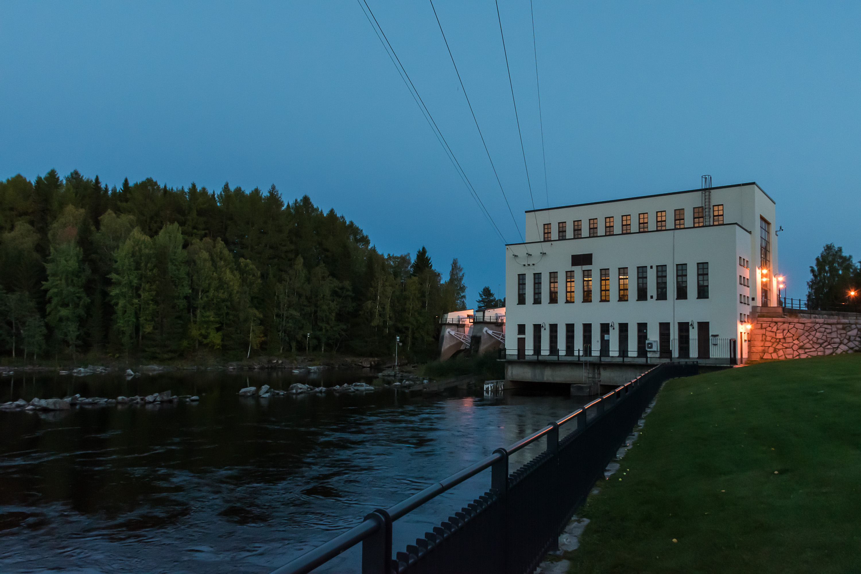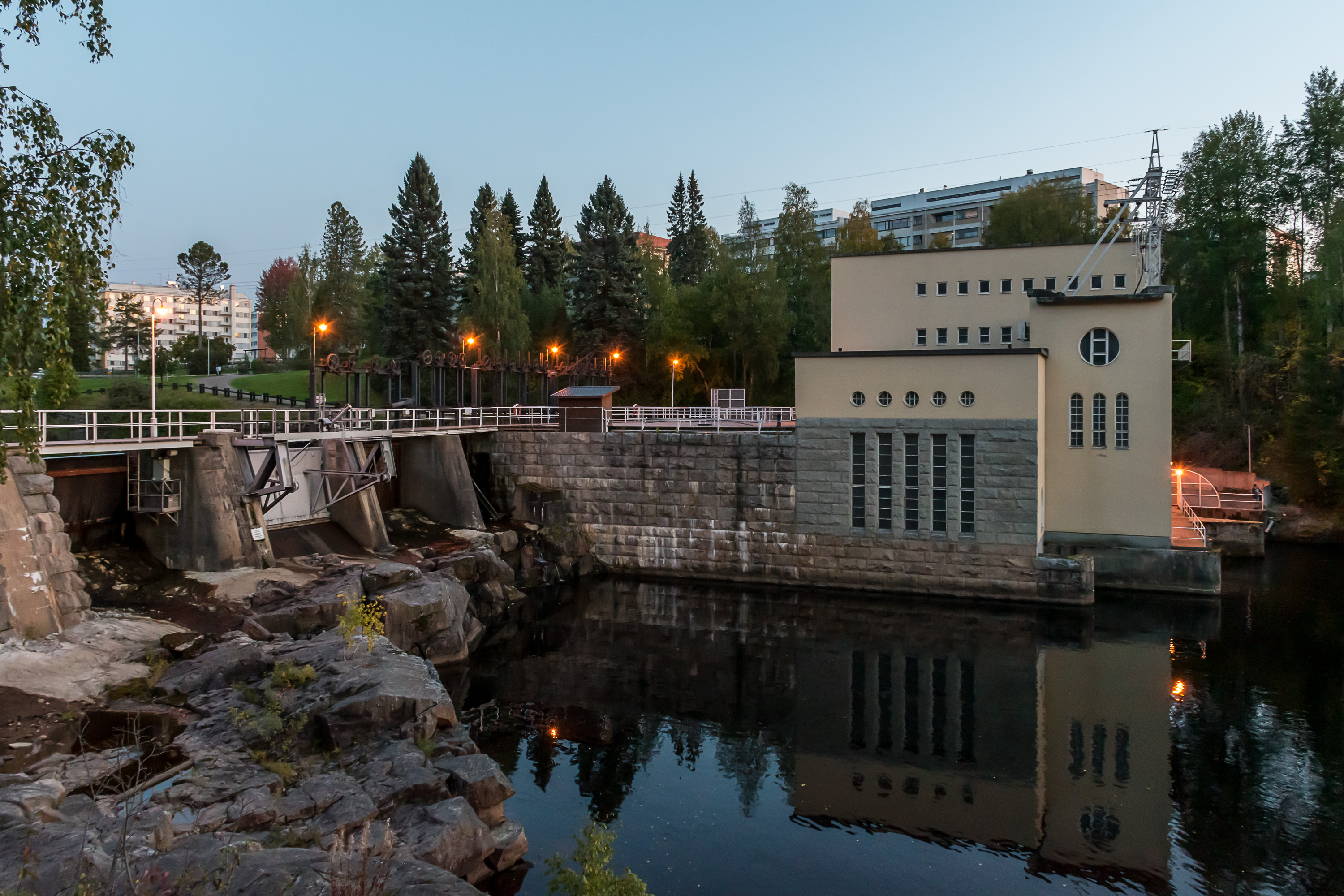На фото — нижняя ГЭС, Эммякоски (Ämmäkoski, фин. Бабкин порог). Она построена в 1917 году компанией Kajaani Oy, которой принадлежал местный целлюлозный комбинат и остальные предприятия лесной промышленности. Мощность — скромные 4.9 МВт. До сих пор работают старые генераторы 1917 и 1941 годов.