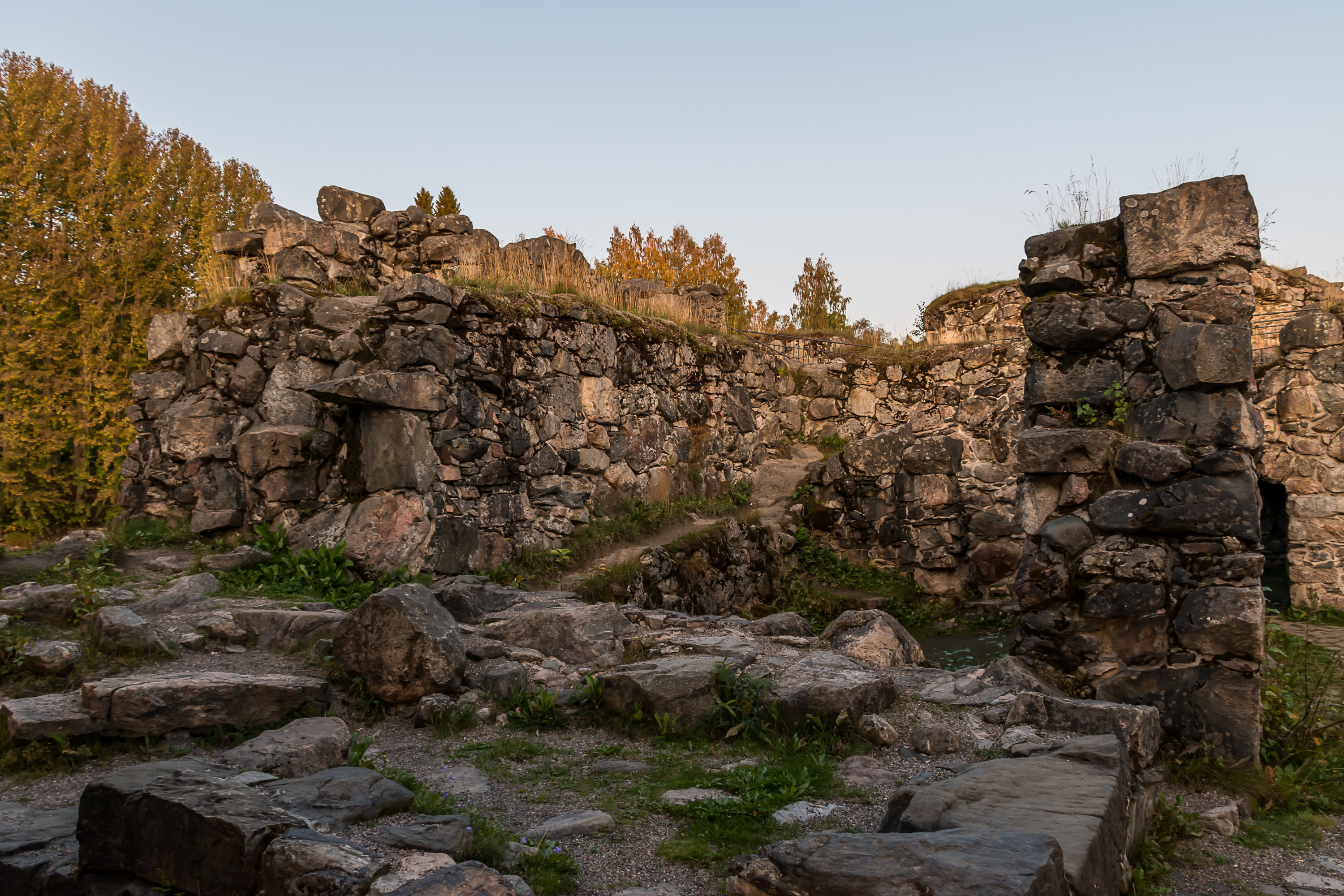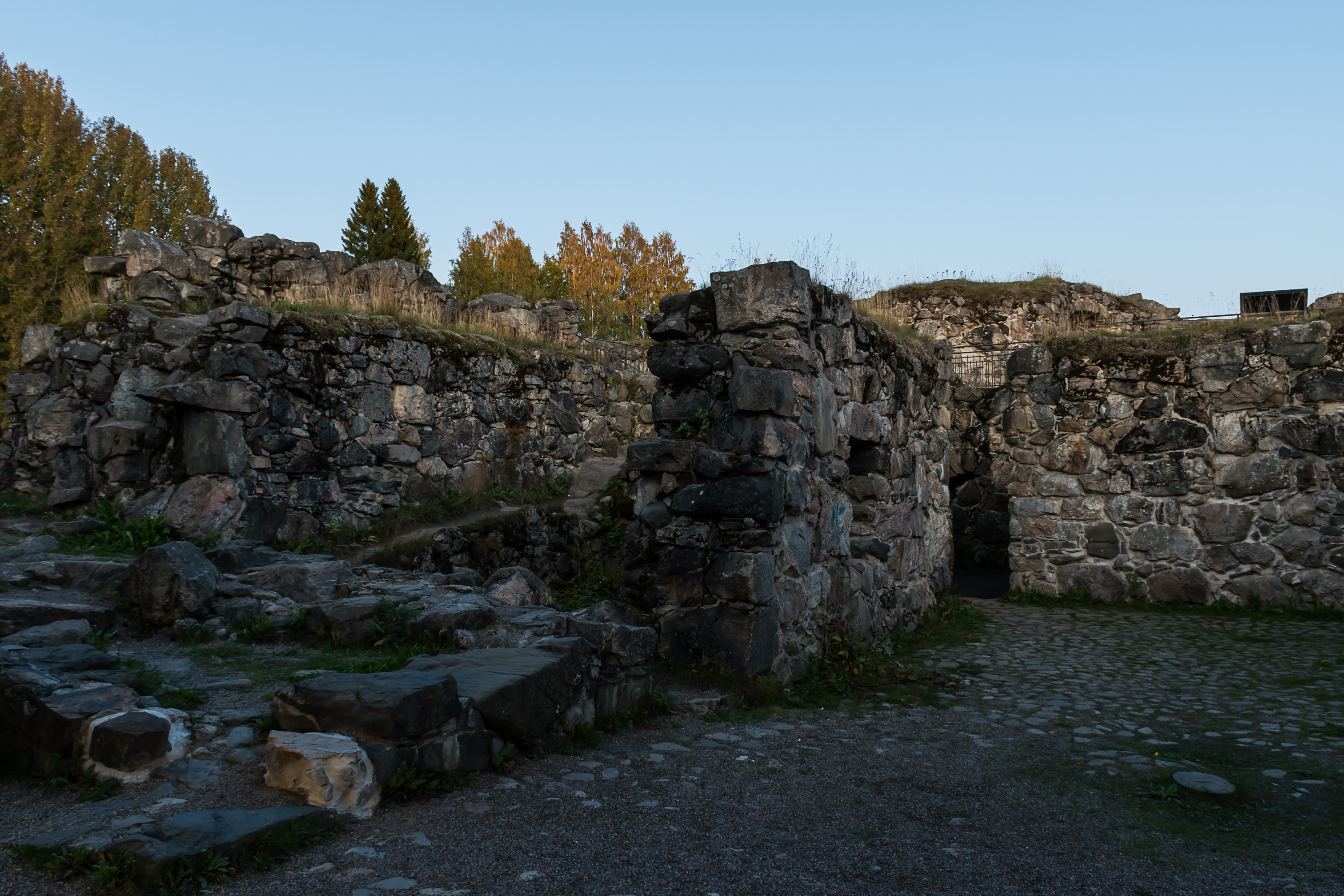 36. Впрочем, на самом деле руины подвергались реставрации, и не раз. К концу 19 века, когда к замку впервые проснулся интерес как к достопримечательности, руины были погребены под толстым слоем грунта и каменных обломков, а остатки стен были в очень плохом состоянии. Реставрировали тогда довольно по-простецки, грозящие обвалиться места подлатали просто кирпичом. Более качественные реставрации (когда кирпич заменили камнем) и археологические раскопки прошли в 20 веке. Сейчас замок состоит на балансе Лесного управления (Metsähallitus).