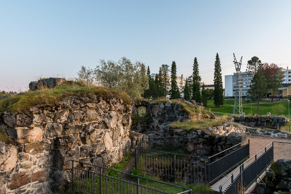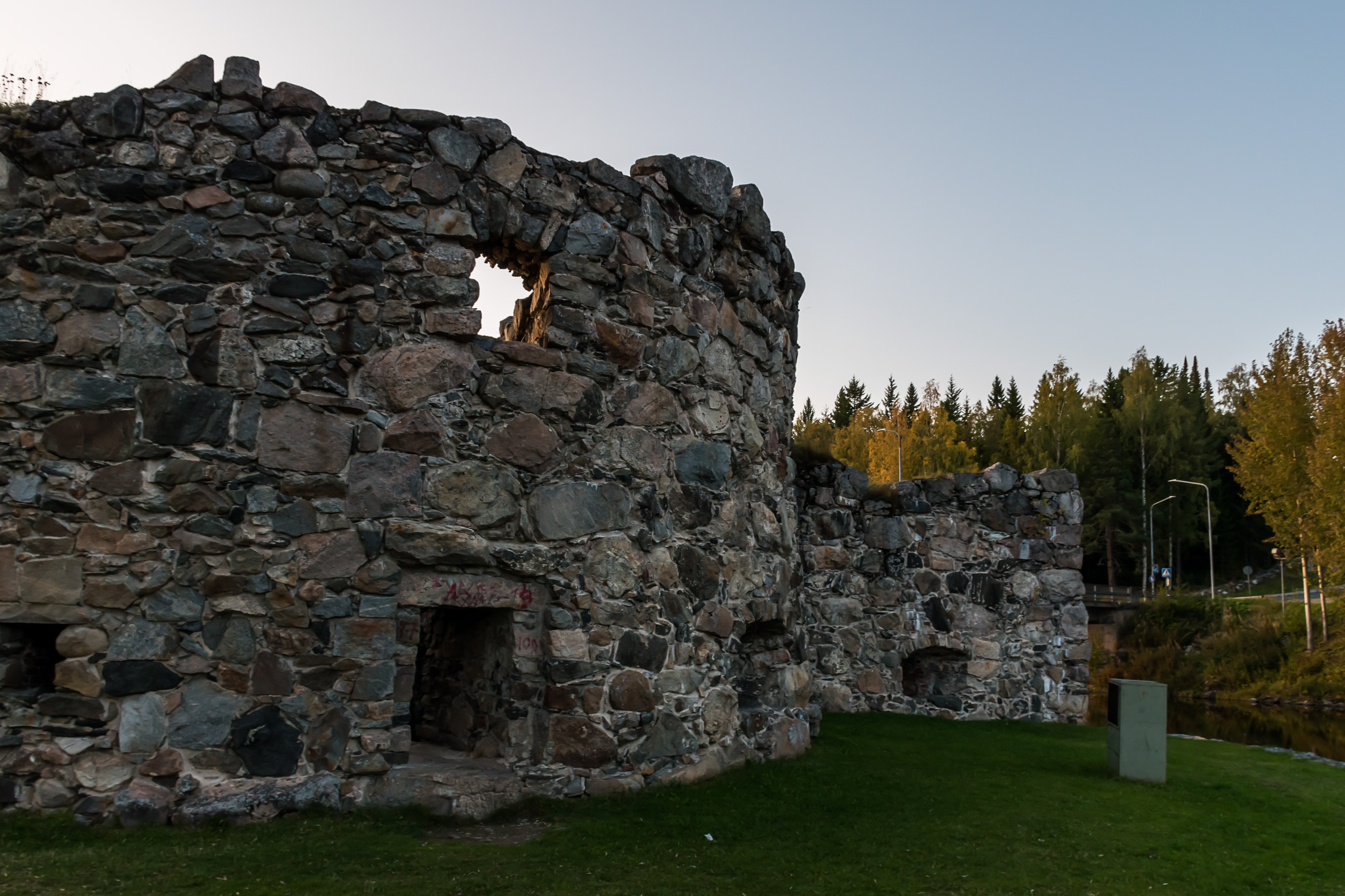2. Каянский замок (Kajaanin linna, швед. Каянеборг, Kajaneborg) строился из камня на островке на порогах Каяанинйоки, почти в центре будущего Каяани. В те же самые годы был основан город Оулу у побережья Ботнического залива, у деревянной крепости Улеоборг, заложенной чуть раньше. Оулу с Улеоборгом и Каянский замок стали самыми северными крепостями Финляндии, призванными закрепить эти земли за Швецией раз и навсегда. Каянский замок так и вовсе был самым северным каменным замком Европы, да, наверное, и всего мира.