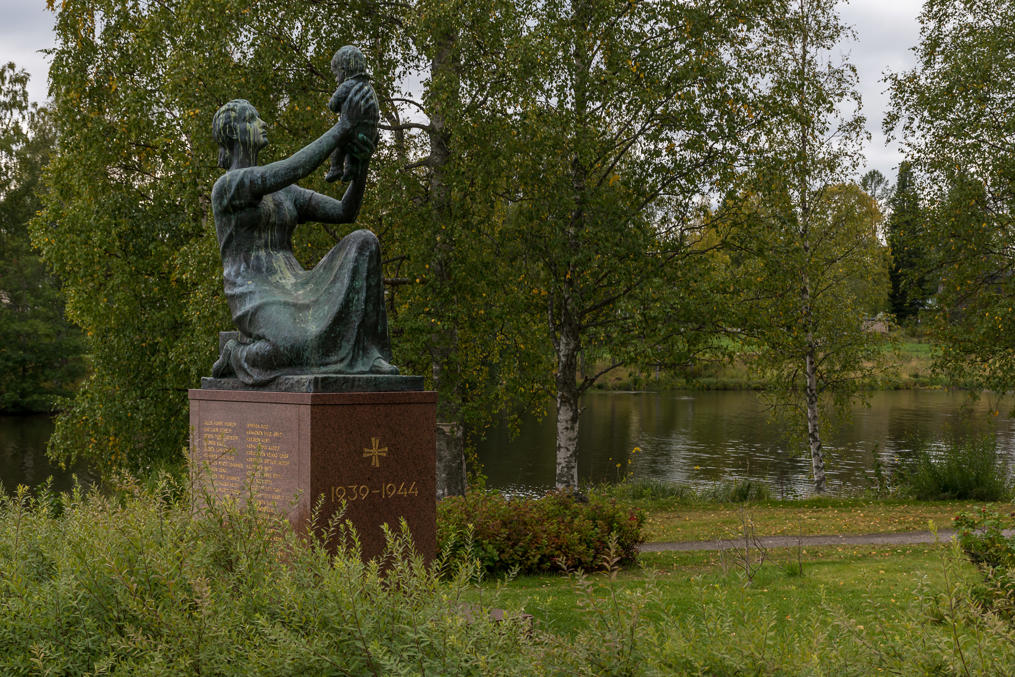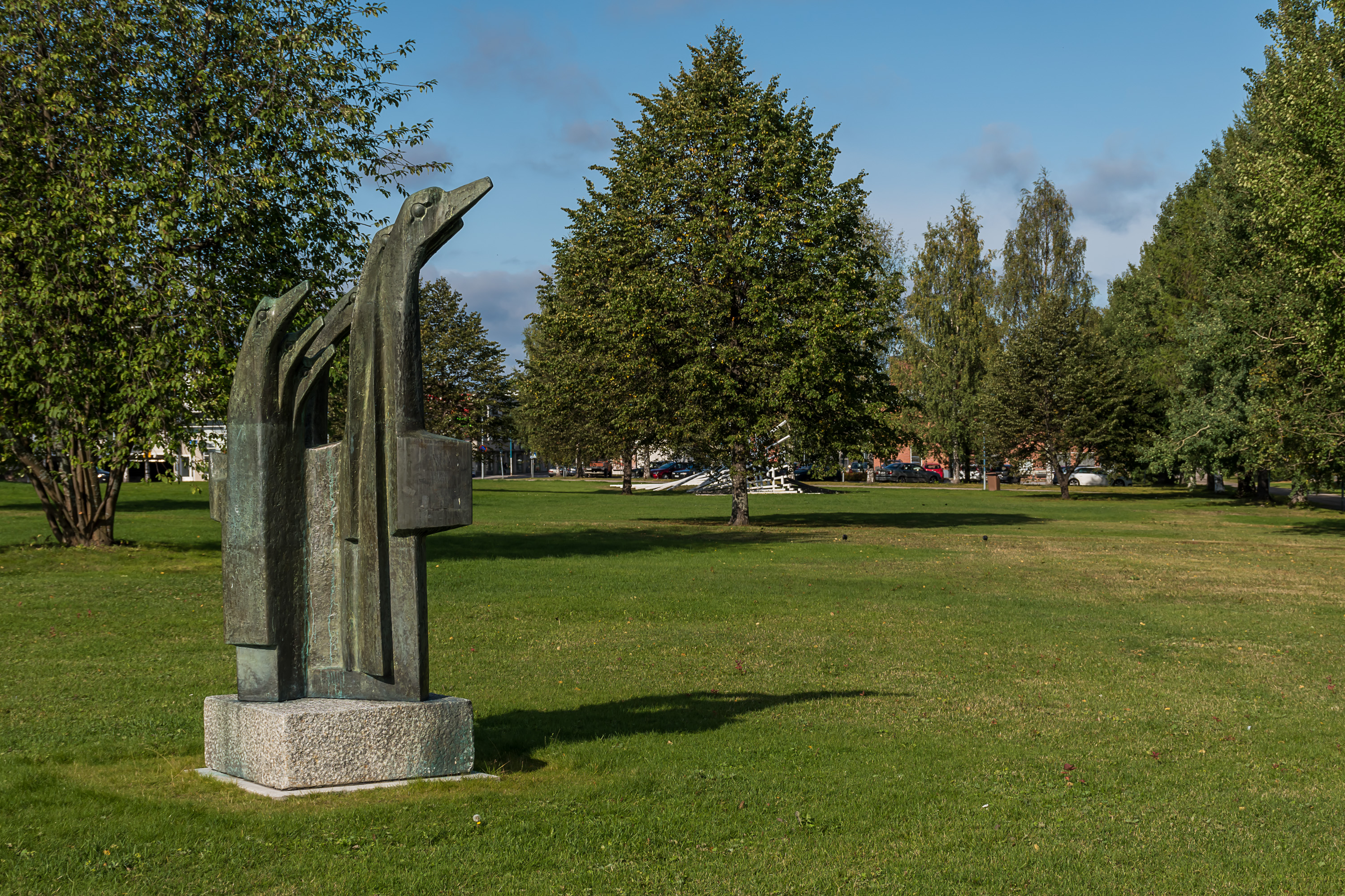 38. На берегу пруда — памятник погибшим в войнах работникам заводов Kajaani. Называется "Будущее" (Tulevaisuus, 1957).