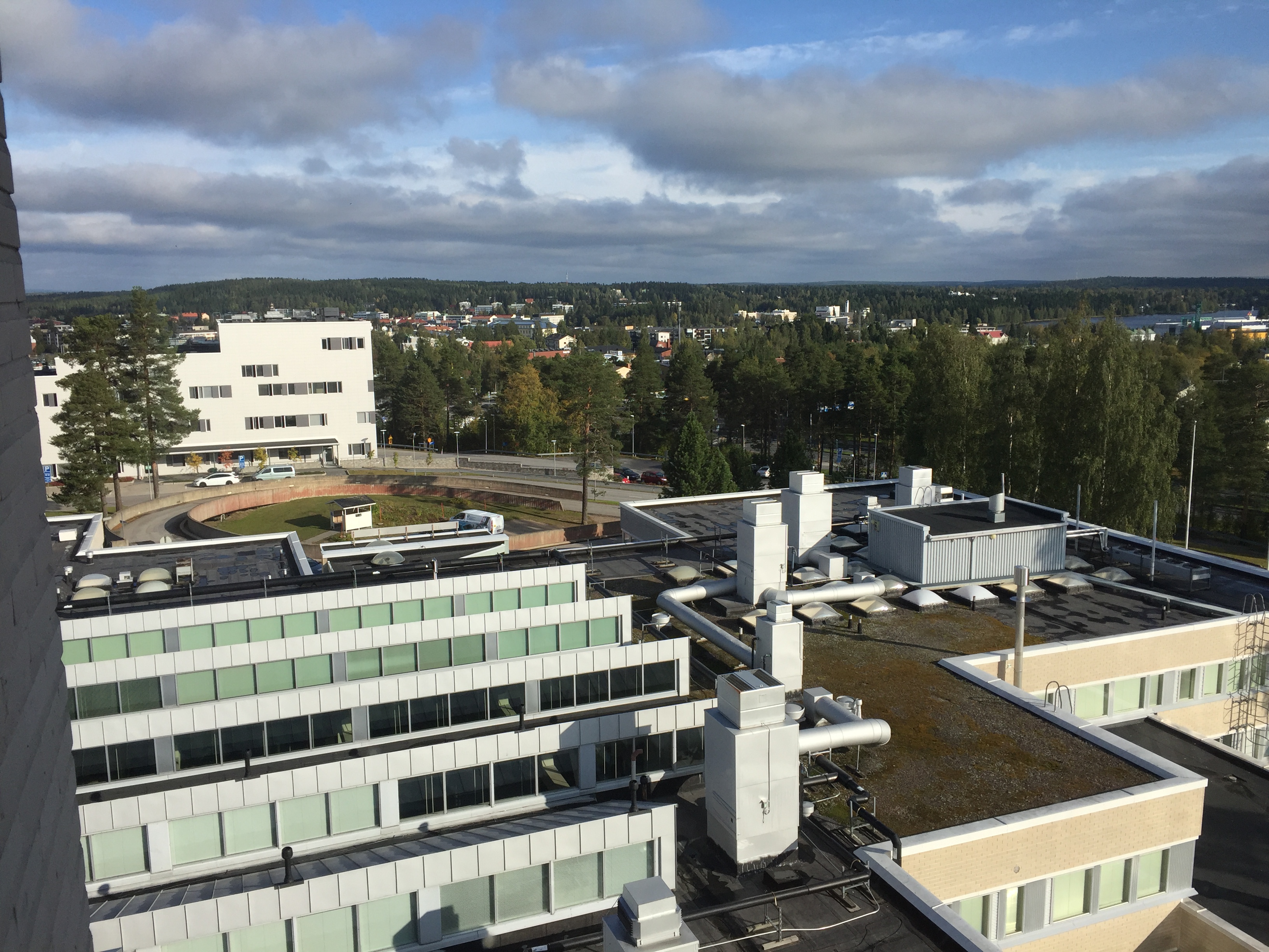 11. Вид из больницы в сторону центра города. Больница открыта в кекконенские времена, по состоянию на 2019 достраивался новый корпус. В больнице не делают слишком сложных операций и процедур, на них надо ездить (самим или на скорой) в Университетскую больницу Оулу; в Финляндии высший "ярус" здравоохранения — это пять университетских больниц в Хельсинки, Тампере, Турку, Куопио и Оулу. Мою подругу тоже изначально хотели было повезти в Оулу, но все-таки справились с операцией и тут в Каяани. Ну, подробнее про больницу, с интерьерами немного, можно почитать в старом посте про то происшествие.