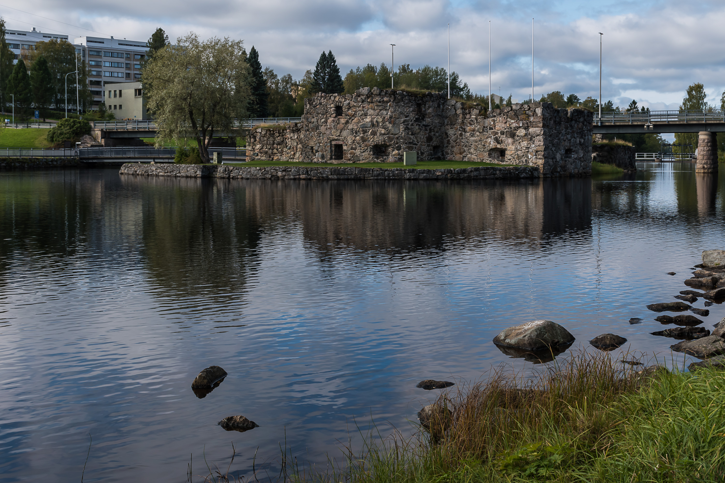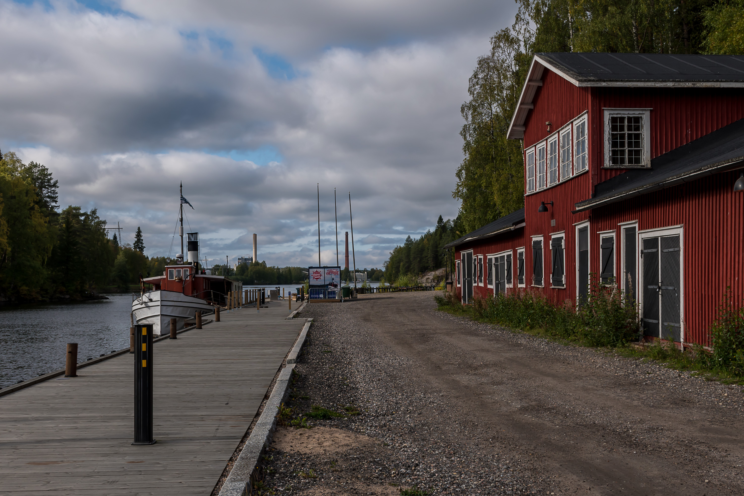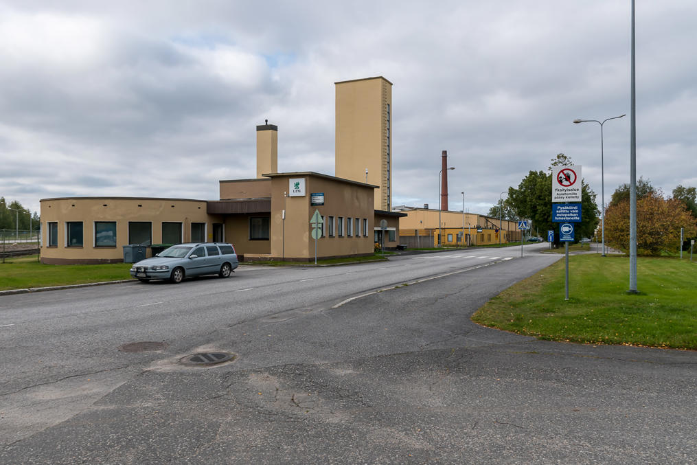 35. За мостом на западном берегу — старая каянская промзона. Тут были лесопилка, целлюлозный комбинат и бумажный комбинат компании Kajaani, просуществовавшей как независимая компания, с красивым логотипом с северным оленем, с 1907 по 1989 год, а в настоящий момент являющаяся частью UPM, одного из крупнейших теперь финских лесопромышленных концернов. Как уже упоминалось, и целлюлозный, и бумажный комбинат закрыты, но лесопилка до сих пор действует, хотя в 2012 была продана компании Pölkky из далекого северного Куусамо.