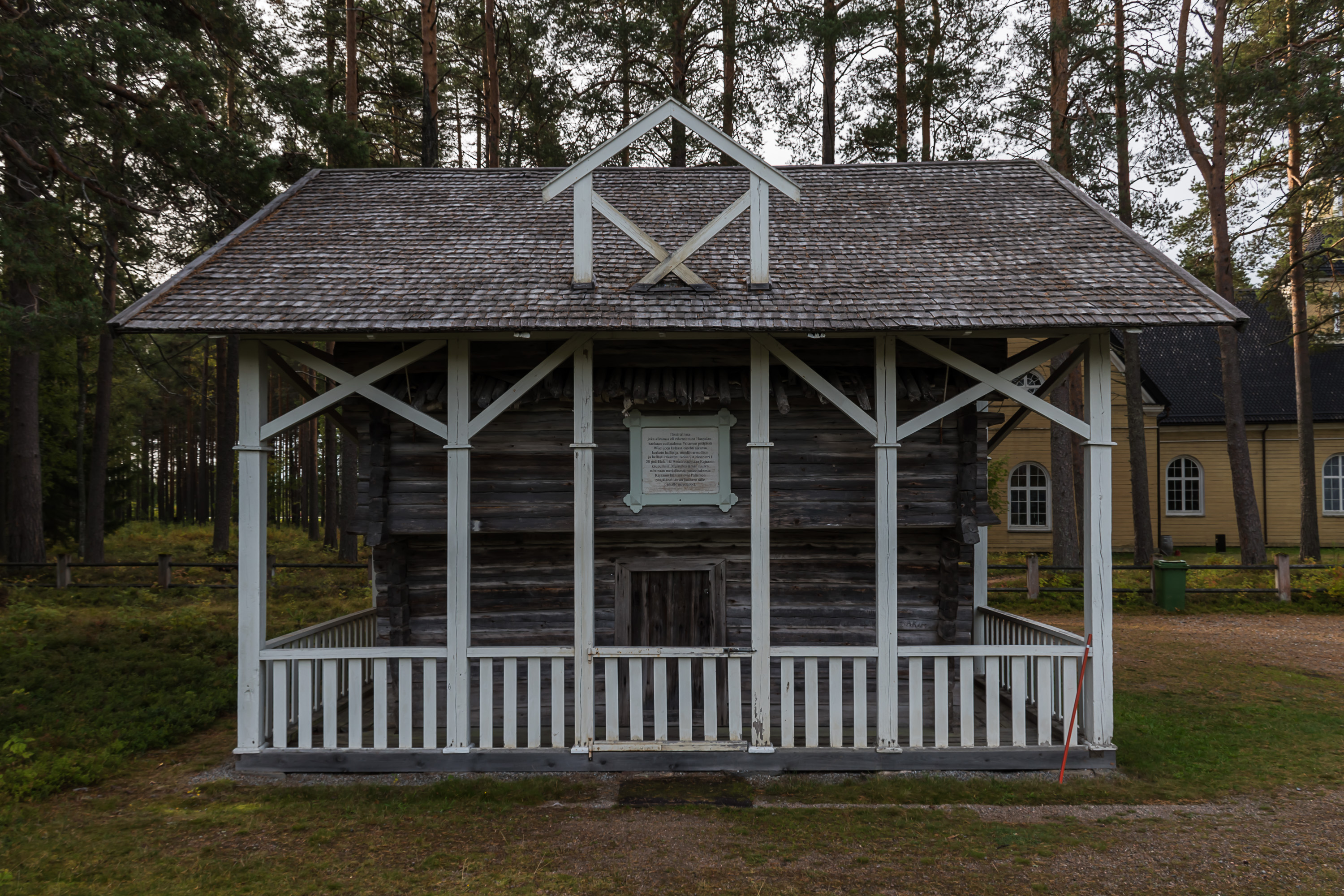 8. А в этой конюшне, как гласит памятная табличка, 28.8.1819 изволил остановиться перекусить не кто иной, как Великий князь Финляндский, государь Александр I, во время своей поездки в Каяани! Александр I совершил большую поездку по всей Финляндии в августе-сентябре 1819: Архангельск — Сортавала — Куопио — Иисалми — Каяани — Оулу — Вааса — Турку — Хямеэнлинна — Тампере — Хельсинки — Выборг — Петербург. В конюшне у какой-то курной избы близ деревни Вуолийоки он отобедал за отсутствием другой цивилизации поблизости. Конюшню в честь этого перенесли сюда, к церкви Палтаниеми, позднее; в целом от этого путешествия в Финляндии остался целый ряд памятников, да и для истории страны это был достаточно значимый эпизод, например, с этой поездки по-настоящему началась промышленная история Финляндии вообще и города Тампере в частности, о чем я упоминал недавно в рассказе про город Форсса.