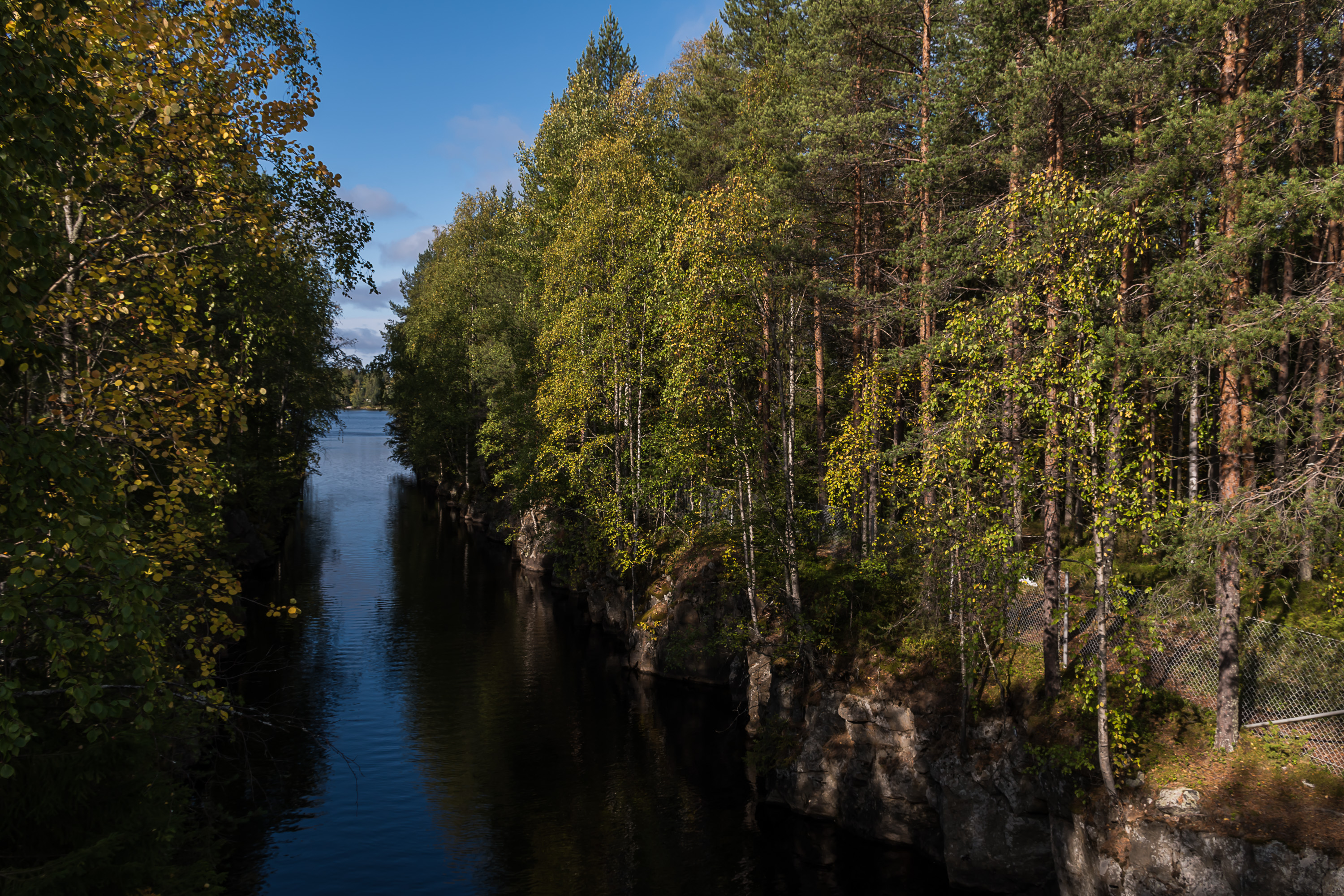 21. Впрочем, прямо в районе ж/д моста находятся небольшие пороги Петяйскоски, проплыть можно, но непросто. Чтобы облегчить путь лодкам с дегтем, в обход порогов в 1868 году пробили узкий 200-метровый канал, так называемый Голодный канал (Nälkäkanava) — как раз же были Великие Голодные годы, которые я упоминал чуть выше — канал строили в числе прочего, чтобы занять безработных, а платили им зерном. А работа была очень тяжелая, как хорошо видно, канал пришлось пробивать непосредственно в скале. И все равно он вышел в итоге таким мелким, что проку от него было мало, пока к концу 19 века не углубили дополнительно.