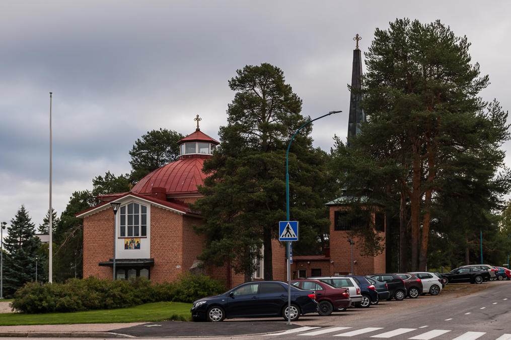 41. В этот раз по пути обнаружилась православная церковь — церковь Преображения Господня. Здесь, ближе к восточной границе страны, доля православного населения достаточно заметная, хоть и все равно не превышает единицы процентов. К Каянскому приходу относилась вся территория Кайнуу, и состояло в нем около 1500 человек; с начала 2022 года Каянский, Оулусский и Лапландский православные приходы объединили в один, Северо-Финляндский (Pohjois-Suomen ortodoksinen seurakunta). Церковь построена в 1959 году.