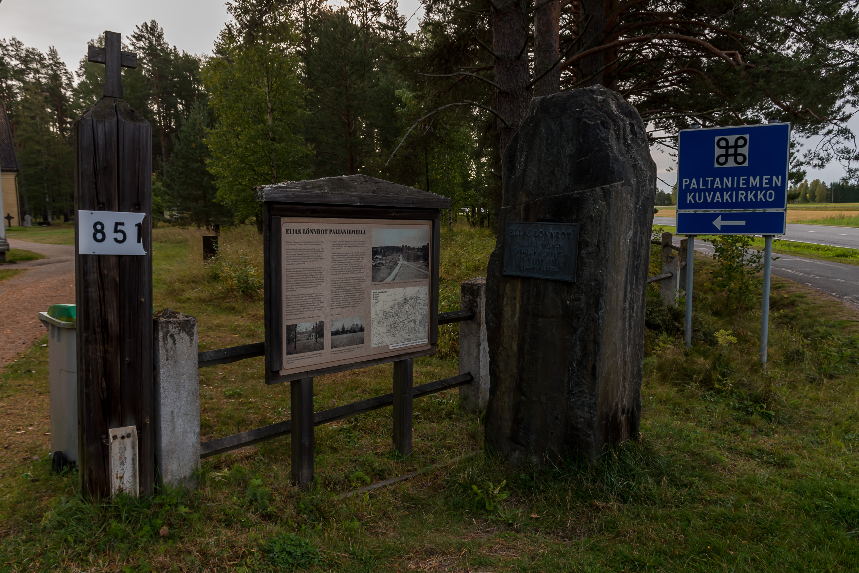 7. Переехавший в Каяани в 1833 на должность уездного врача будущий автор "Калевалы" Элиас Лённрот изначально купил дом именно в Палтаниеми, в 1834 году, о чем сообщает памятная табличка у ворот церкви. Но прожил тут всего год, неудобно было ездить в город — далековато; уже в 1835 переехал в дом на мысе Парталанниеми, чуть восточнее Каяани, где и жил с тех пор. А в Палтаниеми же тот дом, где жил Лённрот — торп Хёвелё (Hövelö) — купила парой десятилетий позже семья, где в 1878 родился поэт Эйно Лейно (урожденный Армас Эйнар Леопольд Лённбом). Там он и провел детство.