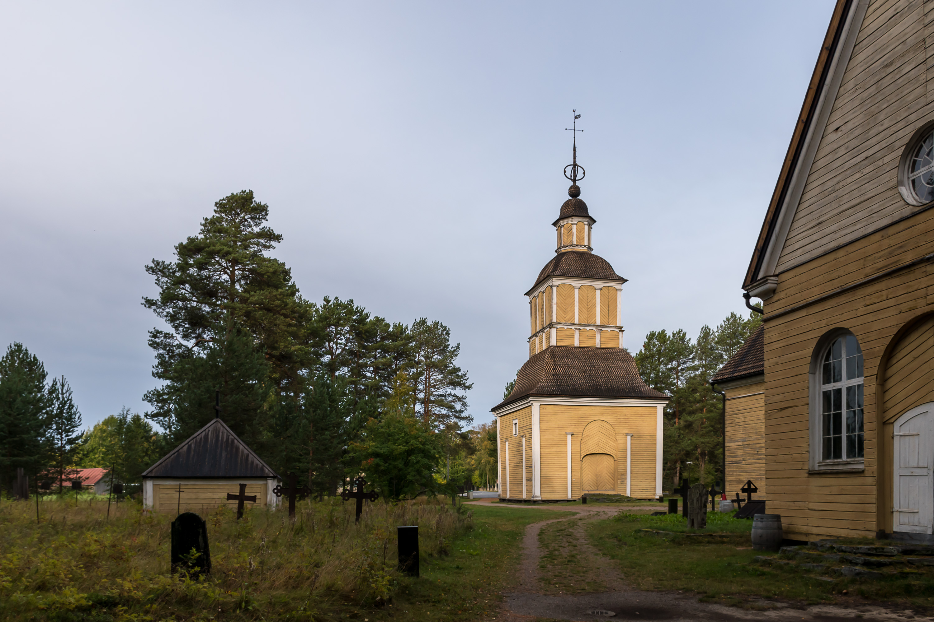 3. На берегу Оулуярви была построена когда-то, как уже упоминалась, первая церковь региона — церковь Палтаниеми (Paltaniemi). Niemi означает мыс, а paltamo — название лодок местной конструкции, на которых возили в Оулу деготь. (В наши дни на северном берегу Оулуярви располагается село и муниципалитет Палтамо, но это отдельное от Палтаниеми село.) Нынешняя церковь Палтаниеми, конечно, уже не первая и даже не вторая — построена в 1726 году и сейчас находится в 200 м от берега; ее предшественница, которая находилась чуть в стороне, была сожжена в Великую Северную войну, одновременно с разорением Каяани и Каянского замка. Но и эта церковь — самая старая сохранившаяся во всем Кайнуу.