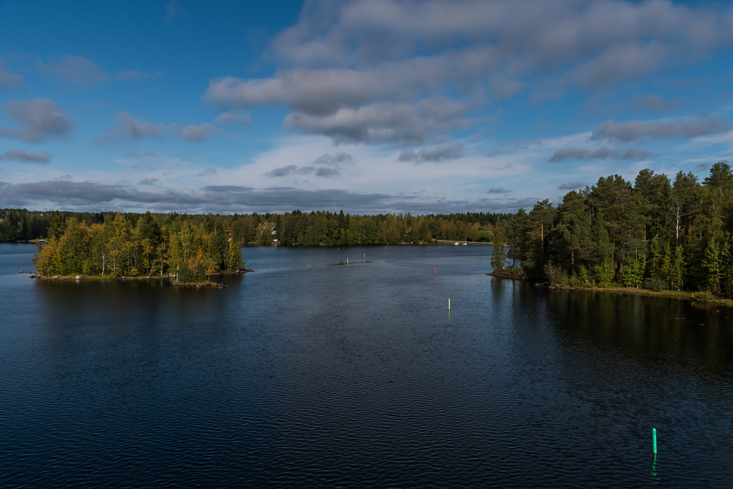 20. На Каяанинйоки выше Каяани фарватер отмечен вешками — отсюда по рекам и озерам можно проплыть более 50 км на восток, за поселки Вуокатти и Соткамо до следующей ГЭС. Конечно, судоходство тут только прогулочное.