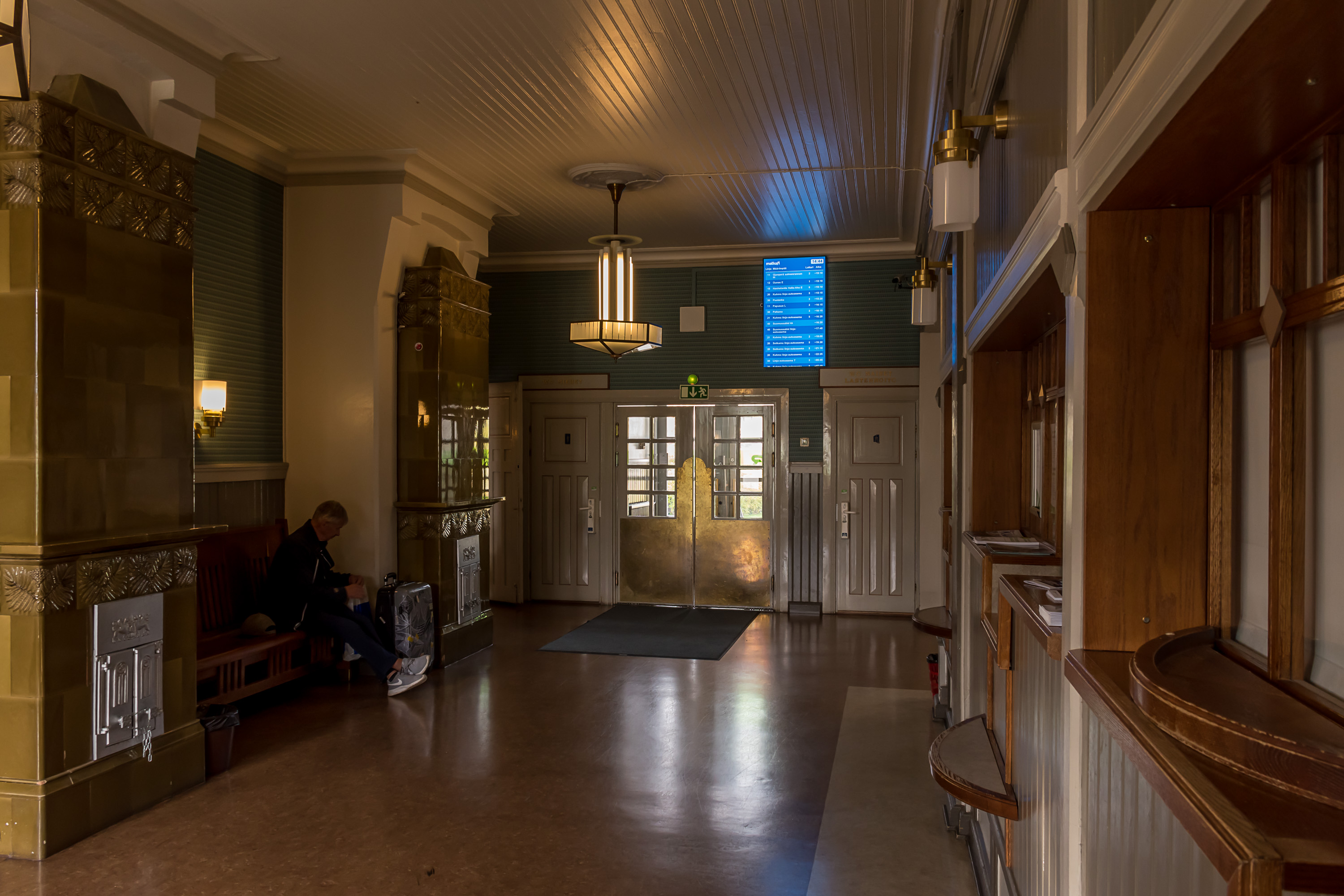 48. В ожидании поезда на Хельсинки. На вокзале отлично сохранились и оригинальные интерьеры. Видимые справа кассы, конечно, уже много лет как закрыты — автоматы теперь.