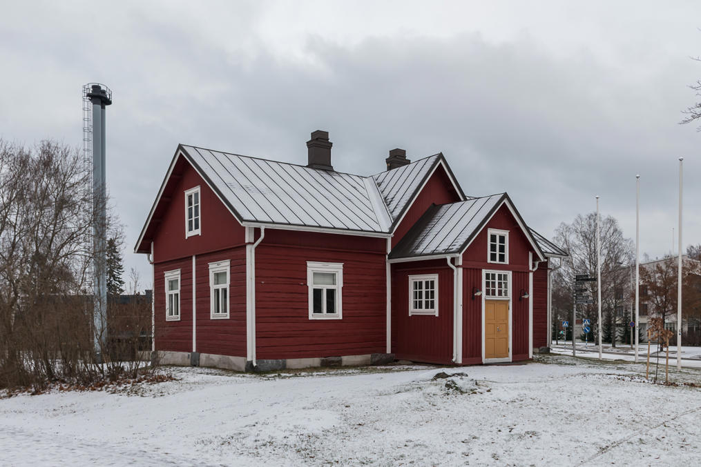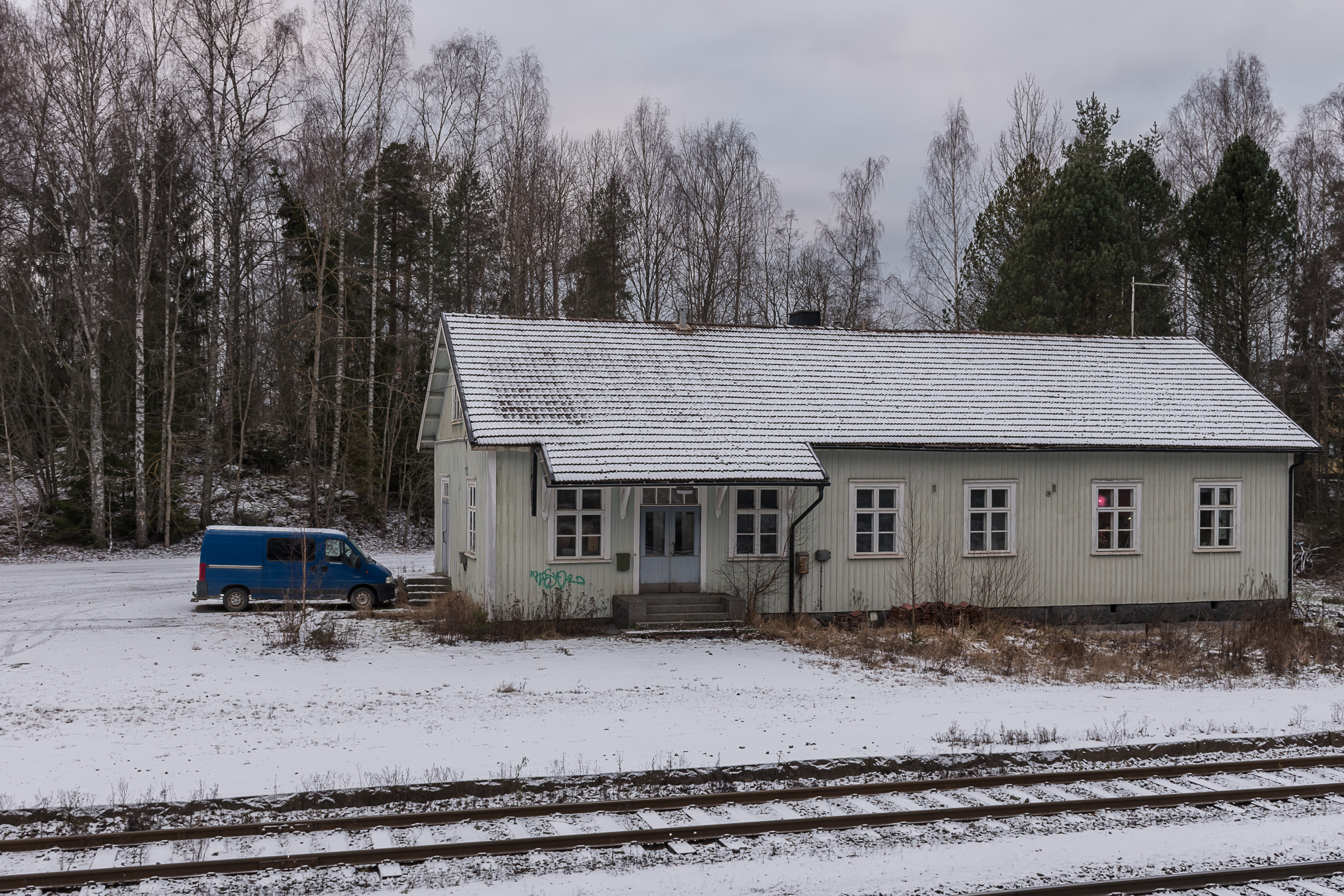 56. Ж/д станция Валкеакоски. Железная дорога пришла в город довольно поздно, в 1938 году — 18-километровая тупиковая ветка от узловой станции Тойяла (Toijala) на Главном ходу Хельсинки-Тампере (от Тойялы же ответвляется линия на Турку, по которой ходят поезда Турку-Тампере). Пассажирское движение на ней не прижилось и было закрыто уже в 1956 году (возможно, из-за неудобного расположения станции), но как минимум ЦБК Тервасаари пользуется железной дорогой по сей день.