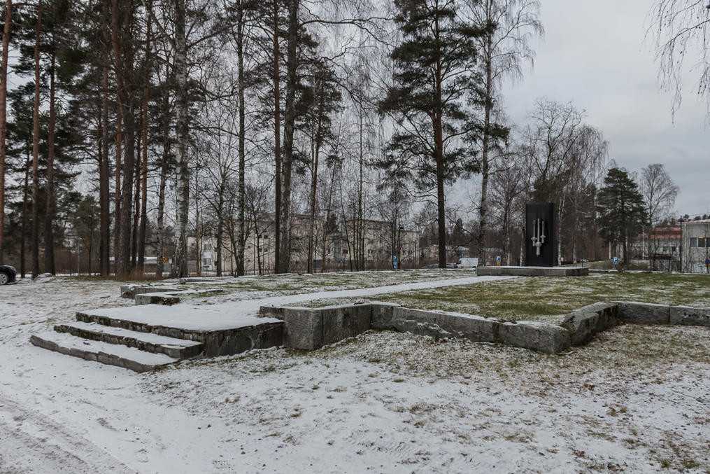 51. Проходим мимо завода, дальше — запущенный парк, в котором стоит памятник на месте, откуда отправлялись валкеакоскинцы на Зимнюю войну и Войну-Продолжение.
