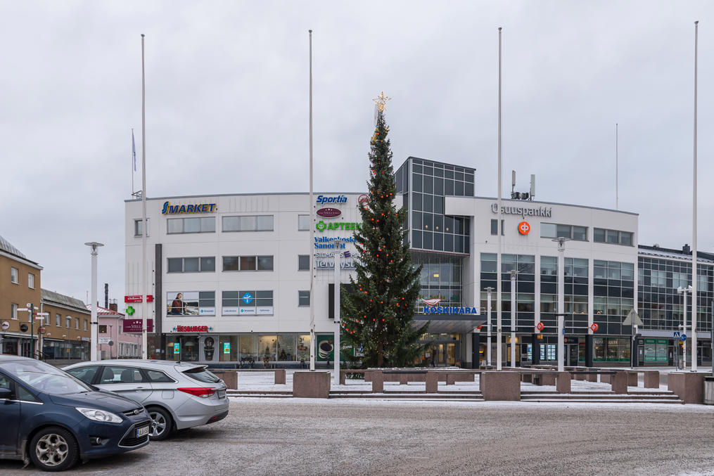 6. На главную площадь выходит местный ТЦ, Koskikara. По-русски это означает "оляпка"; это, если вы не знали, птичка такая, также известная как водяной воробей — живет по берегам рек, может бегать по мелководью и даже нырять. В Финляндии оляпка не особо распространена, но с городом, основанным у речных порогов, вполне может ассоциироваться.
