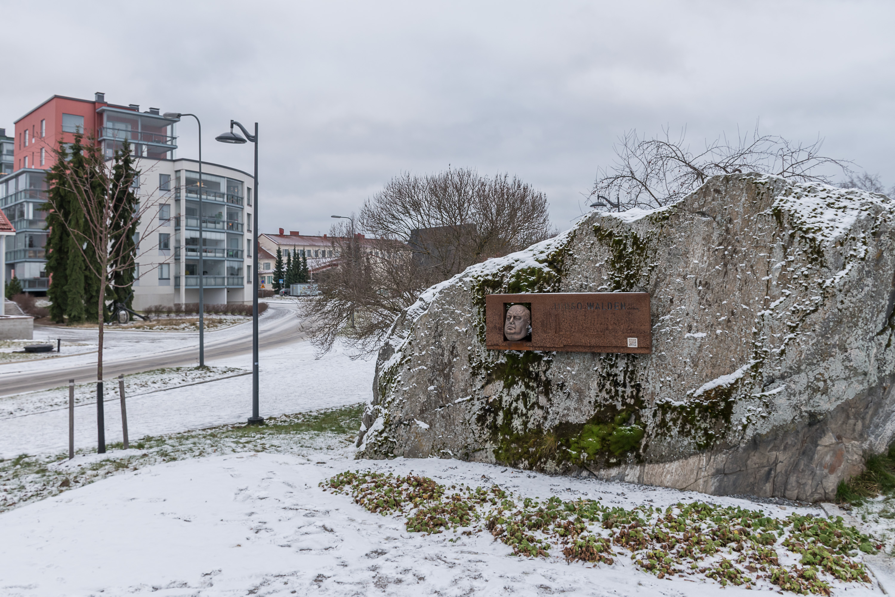 22. В том же сквере — памятная табличка Юусо Валдену (Juuso Walden, 1907-1972), горному советнику, генеральному директору концерна Yhtyneet Paperitehtaat в 1940-1969 годах. Валден работал на заводе в Валкеакоски до вступления в должность гендиректора, и перенес сюда же в Валкеакоски главный офис компании. В городе он свое время был царь и бог, был на короткой ноге с президентом Кекконеном и принимал у себя Тито, Ворошилова, Никсона и британского премьер-министра Макмиллана.