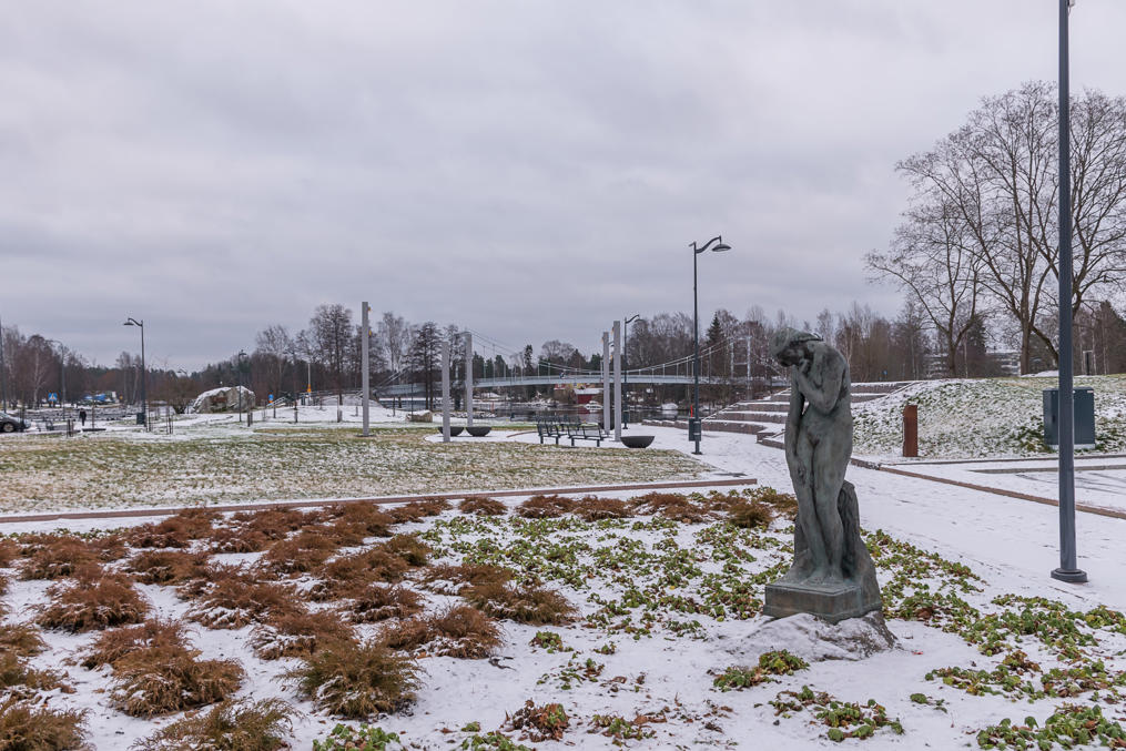 21. Статуя Марьятты в сквере Лепянкорва (Lepänkorvan puisto) рядом с пешеходным мостом. Марьятта (Marjatta) — персонаж из последней руны (главы) "Калевалы", непорочная дева, родившая младенца, которому было суждено стать новым королем Карелии, и из-за которого вековечный Вяйнямёйнен, богатырь и первый человек на Земле, уплыл навеки за море. То есть, стало быть, "Калевала" завершается переходом от языческой эпохи к христианству, а Марьятта — это дева Мария. Статуя, установленная в Валкеакоски в 1999 году, является копией более старой статуи Эмиля Викстрёма (Emil Vikström, 1864-1942), одного из известнейших финских скульпторов. Викстрём прожил большую часть своей жизни в усадьбе Висавуори, по другую сторону озера от Валкеакоски; сейчас там действует его дом-музей.