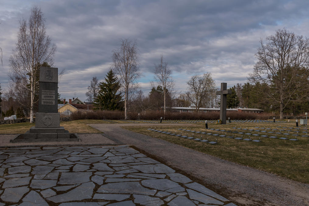 28. Другой офицер войны 1808-1809, полковник Отто Хенрик фон Фиеандт (Otto Henrik von Fieandt, 1762-1823), тоже уроженец Ристийны. Внук того Фиеандта, что оборонял Каянский замок в Великую Северную войну; его дети были возведены во дворянство. Фиеандт, в отличие от Дунккера, памятник которому мы видели выше, войну пережил и мирно скончался под Выборгом; судя по надписи на памятнике, его перевезли сюда с Сорвальского кладбища в Выборге в 1989.