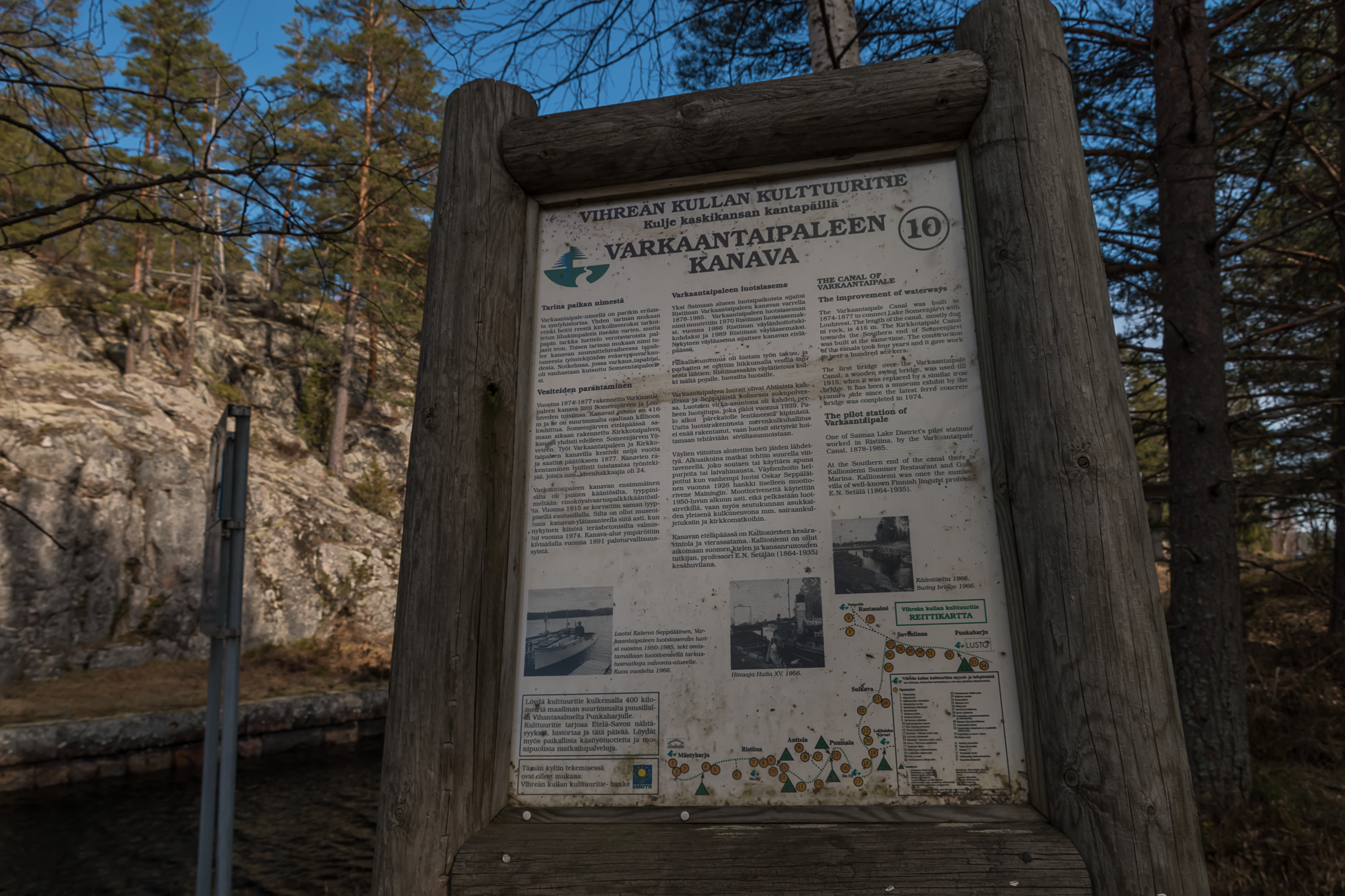 20. Канал, как и музейная ферма, относятся к культурному маршруту Зеленого Золота (Vihreän kullan kultturitie), отмеченному специальным знаком у автодорог. Зеленое золото — это лес, и достопримечательности вдоль маршрута в основном связаны с лесом и лесной промышленностью. Маршрут проходит от трассы 5 на полпути между Хейнолой и Миккели, через поселки и города Мянтюхарью, Ристийна, Пуумала, Сулкава, Савонлинна, Пункахарью, до трассы 6 в районе Париккалы. На велосипеде, наверное, хороший и красивый маршрут, хотя, как можно заметить по состоянию информационных щитов, обустраивался он давно и связной информации о нем онлайн довольно мало.