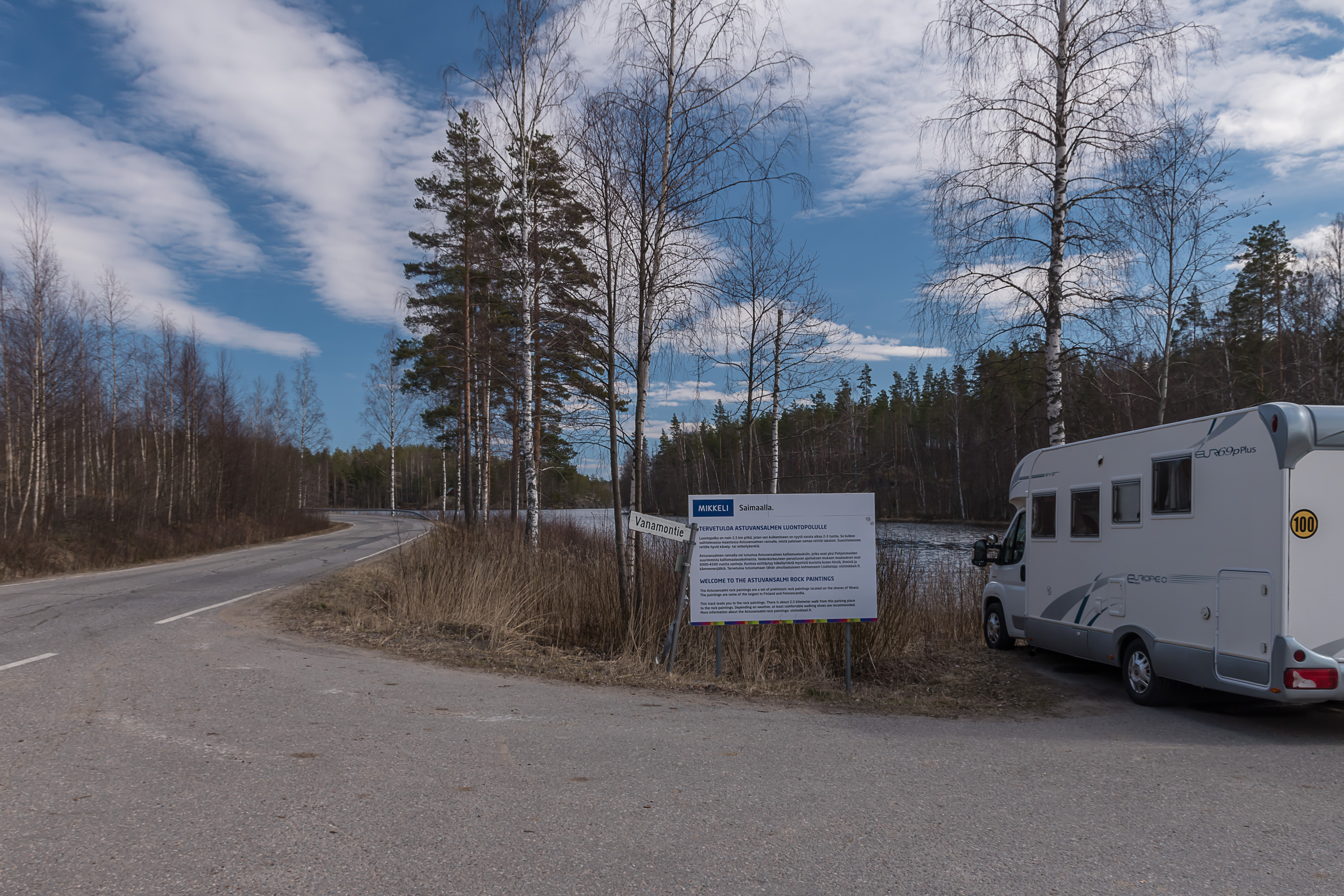 На Астувансалми же попасть довольно легко, по тропе 2 км от дороги. Ехать нужно по адресу Suurlahdentie 2040, Ristiina; из Миккели около 20 км на юг по трассе 13 в сторону Лаппеенранты до села Ристийна, и из центра Ристийны на восток еще около 20 км по небольшой дороге номер 4323 по указателям на Суурлахти (Suurlahti). Общественного транспорта нет. В 2022 году будут однодневные туры из Миккели — на автобусах до Ристийны и дальше озерные круизы, до наскальных рисунков и еще пары мест, за 39 евро со (взрослого) носа, информация здесь, только по-фински. Это касается сезона-2022 и в последующие годы круизы могут измениться или их может вовсе не быть. Сайт VisitMikkeli рекомендует именно круизы, ссылаясь на плохое состояние тропы; ничего сказать не могу, в 2020 проблем особых не было.