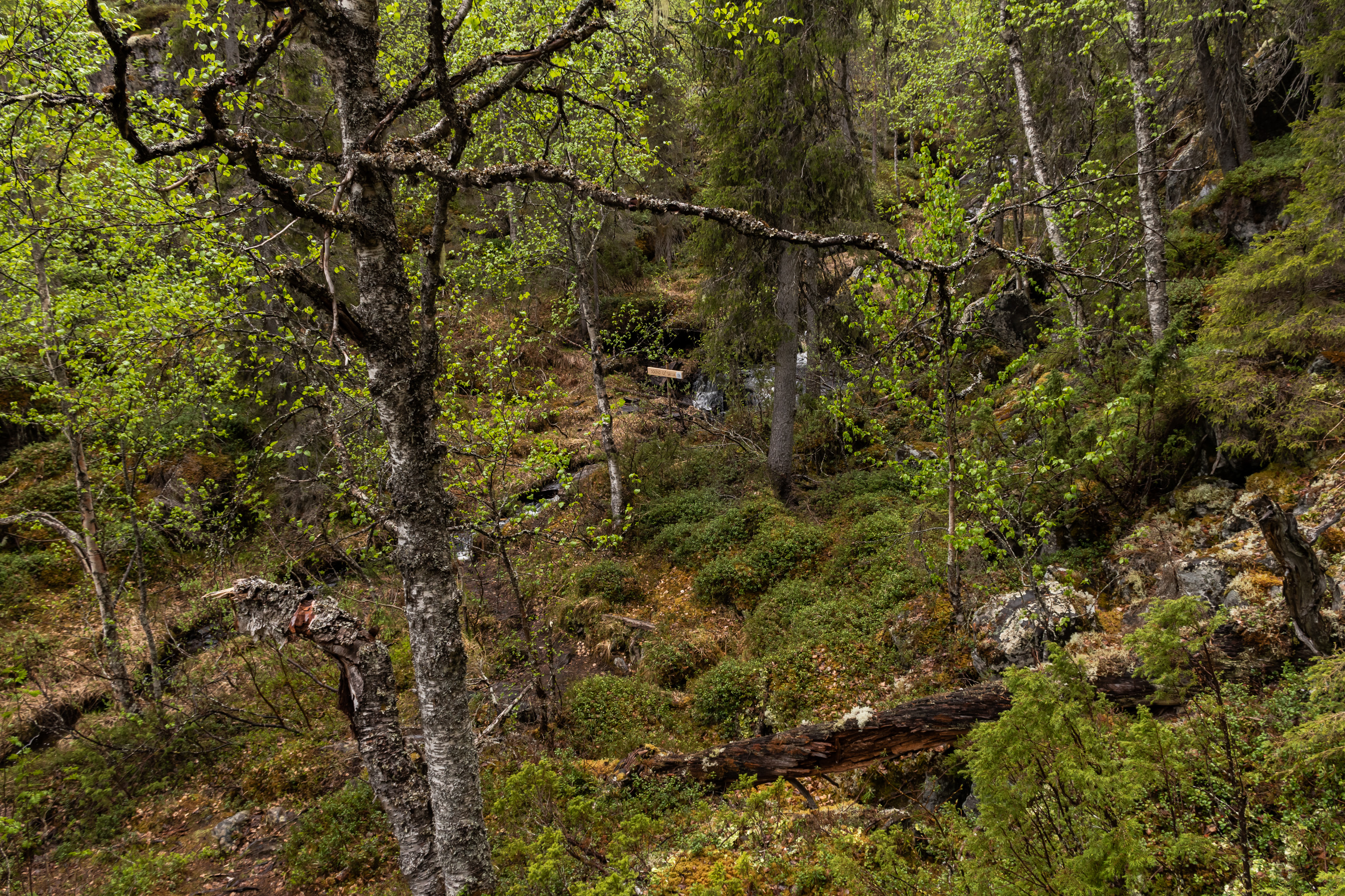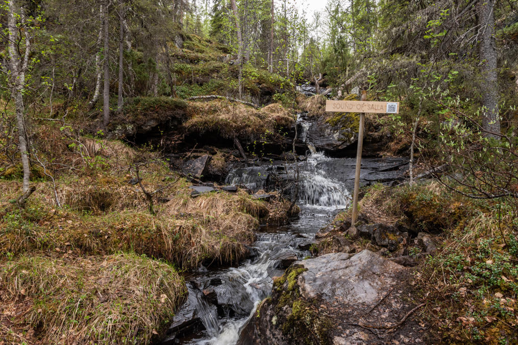 61. Пахакуру (Pahakuru, фин. Злое ущелье), точнее, Паханойянкуру (Pahanojankuru, фин. ущелье Злого ручья) — главная достопримечательность маршрута, на склоне крупной каньонообразной долины Аатсингинхаута. Но долину саму отсюда не видно, и ущелье с водопадиком на самом деле совсем маленькое, хотя и действительно живописное. Ну вот зачем эту табличку "Sound of Salla" перед водопадом самым влепили еще...