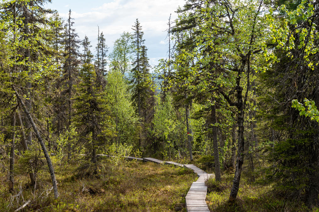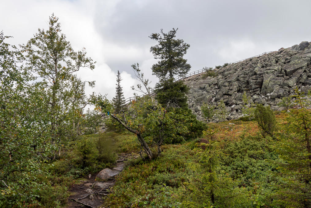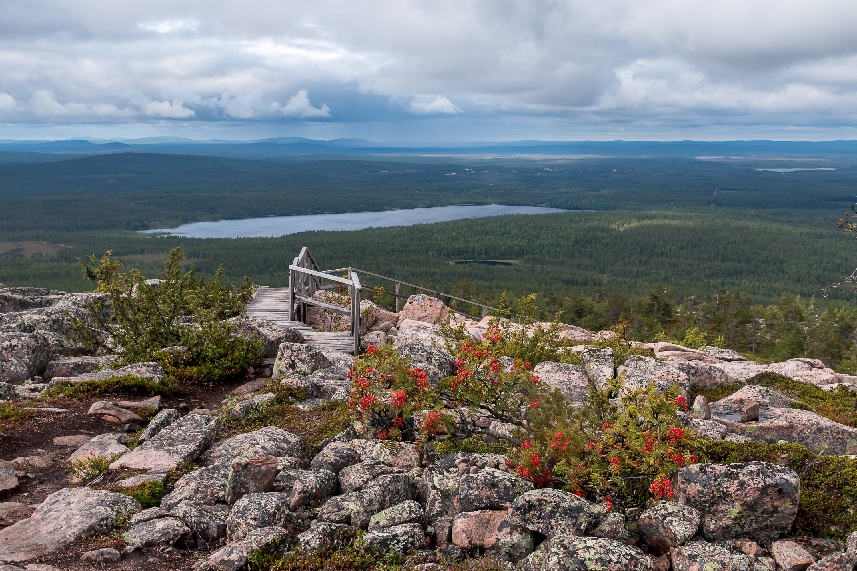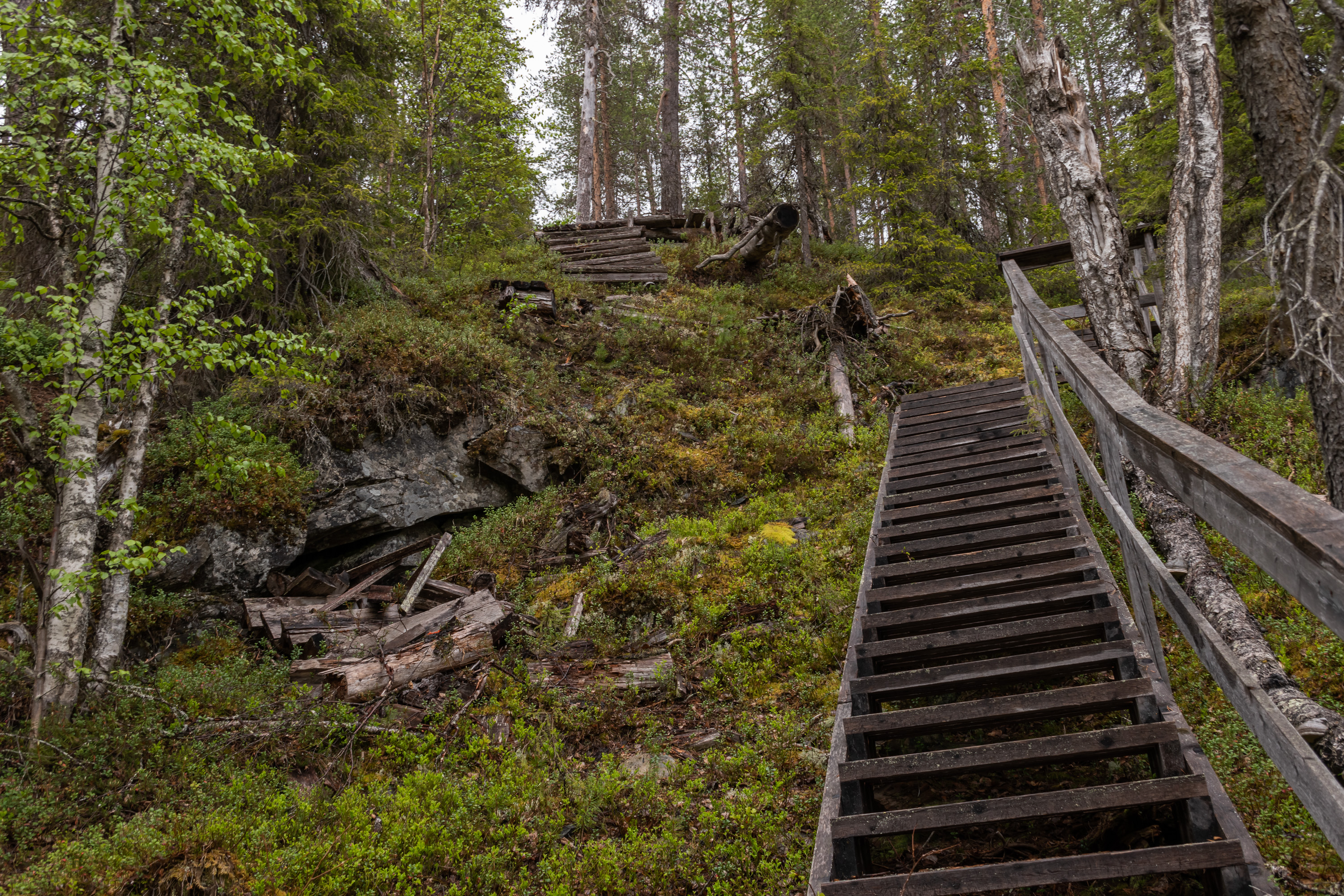 На данный момент в национальном парке ведутся относительно масштабные работы — походные тропы и места привалов обновляют. Для официального открытия национального парка в июне 2022, честно говоря, было еще рановато — из-за этих работ даже маршрут на вершину Исо-Пюхятунтури был закрыт. Эти фото сделаны в 2020 году; я тогда ехал из Куусамо в Инари, и заехал сюда, чтоб по-быстрому забраться на вершину. Тропа (1.9 км в одну сторону) начинается с небольшой стоянки в конце дороги между Исо- и Пиени-Пюхятунтури, на высоте около 300 м над уровнем моря.