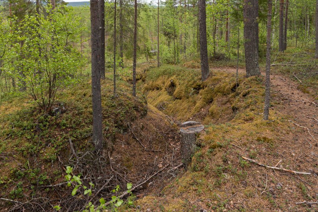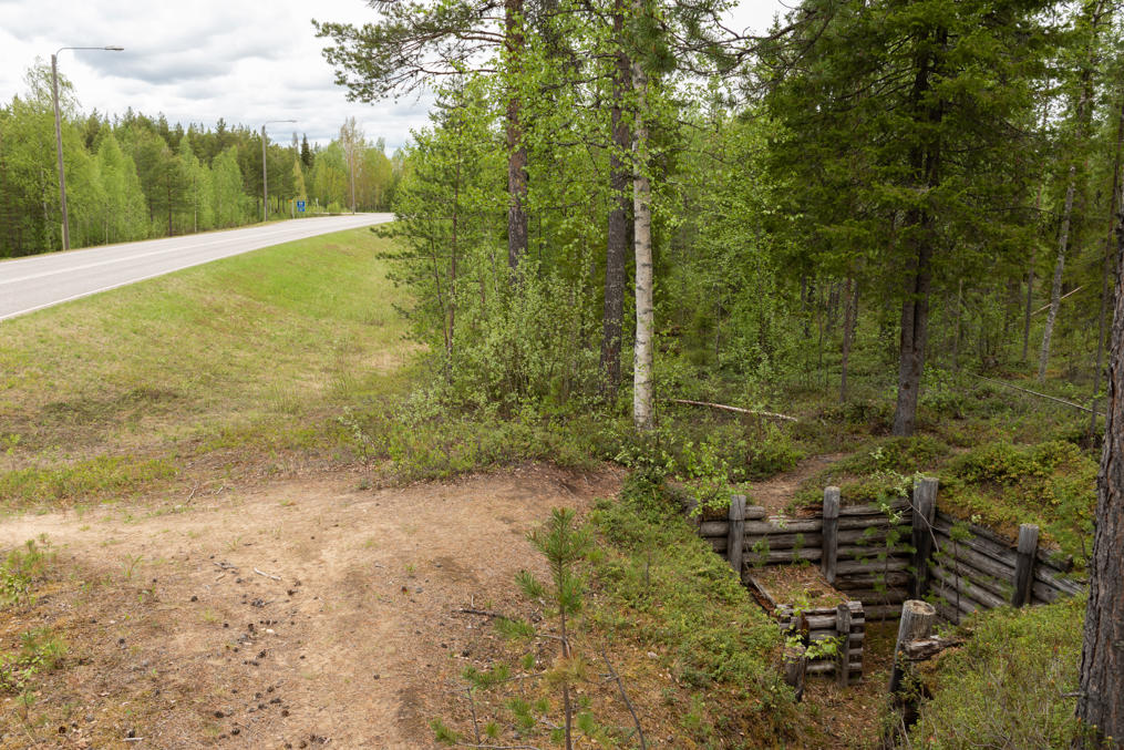 18. Дорога к границе идет параллельно железной дороге, и рядом с этой дорогой, совсем недалеко от пляжа, можно полюбоваться остатками линии Салпа (Salpalinja, фин. линия-засов). Линия Салпа — оборонительная линия, построенная в короткий межвоенный период 1940-1941 вдоль всей новой восточной границы Финляндии, от Финского залива до Петсамо-Печенги. Так как область Петсамо была в итоге также утрачена в 1944, укрепления в Салла и Савукоски остались последними на современной территории Финляндии. Оборонительная линия имела весьма титанические масштабы (до сих пор она остается крупнейшей стройкой в истории страны), и в особенности в финской Южной Карелии, от Финского залива до Саймы, расположено много ее бетонных бункеров и сплошных противотанковых заграждений. Но здесь, на севере, укрепления были легкими и строили их только у транспортных путей. В этом месте восстановлено только одно пулеметное гнездо у дороги.
