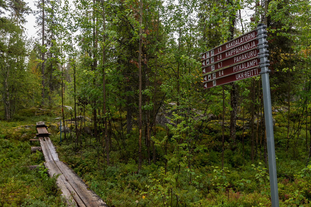 44. На этом в тот раз мое знакомство с Саллой и Салла-тундрами и ограничилось, а в этом году я остановился у их подножия на пару ночей в бревенчатом коттеджике (как нередко бывает, место настолько уютное, что захотелось было остаться на подольше, но планы уже были другие). Оттуда я направился на тропу Пахакуру (Pahakuru), Злого Ущелья (18 км). Даже не нужно было на машине ехать, от дверей коттеджа через туристический поселочек у подножия Салла-тундр можно было быстро дойти пешком прямо до начала тропы. (Если все-таки приехать сюда на машине, ее можно оставить напротив главного здания отеля Holiday Club Salla, там места много.)