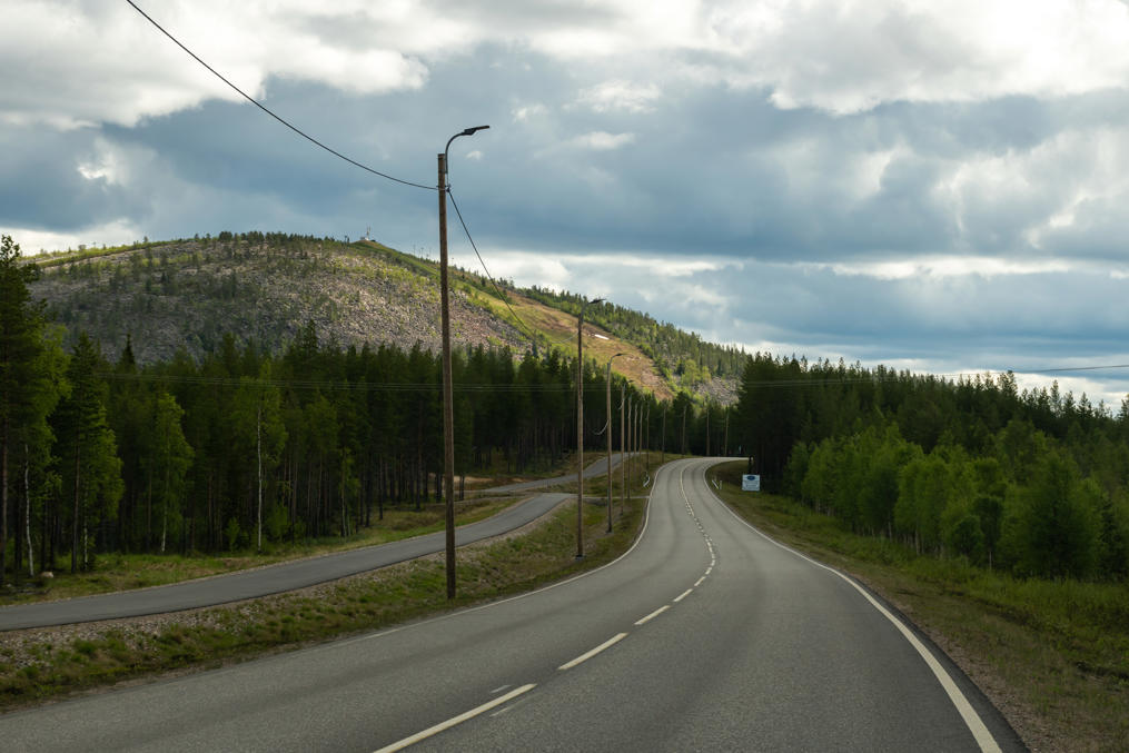 35. Да в принципе и останавливаться тут необязательно, дорога Салла-Куусамо — трасса 950 — дальше и сама проходит весьма близко от Салла-тундр. Салла-тундры (Sallatunturit, Саллатунтурит) — пара небольших сопок-тундр (фьельдов, тунтури; так в Финляндии зовут лысые пологие сопки Лапландии) где-то в 7-9 км южнее села Салла. Раньше их звали Пюхя-тундрами (Pyhätunturit, фин. Святые тундры), и на картах и указателях это название остается до сих пор, хотя его поменяли вполне официально еще в 2012 году (потому что в Лапландии есть куда более известная гора Пюхятунтури, Пюхя-тундра — в национальном парке Пюхя-Луосто в Пелкосенниеми). Большая Пюхя-тундра, Исо-Пюхятунтури (Iso Pyhätunturi) сохранена в первозданном виде, а на Малой Пюхя-тундре, Пиени-Пюхятунтури (Pieni Pyhätunturi), расположены горнолыжные склоны. Исо-Пюхятунтури возвышается на 479 м над уровнем моря и примерно на 240 м над этой автодорогой. На фото Пиени-Пюхятунтури, которая на пару десятков метров пониже старшей сестры.