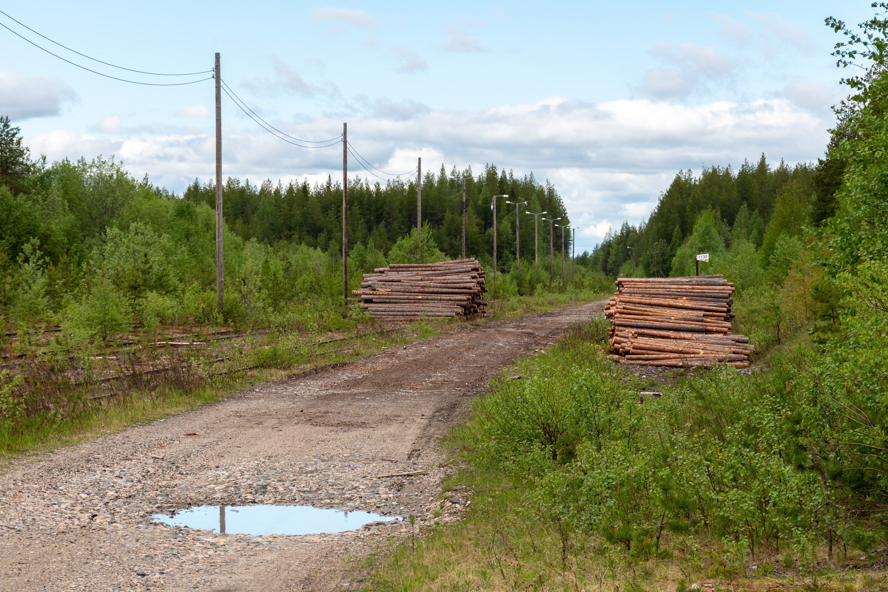 26. На станции, по-видимому, все еще складируют лес, прямо на старых рельсах. 1135 км от Хельсинки, как гласит столбик (это по железным дорогам, а по прямой где-то 770-780 км).