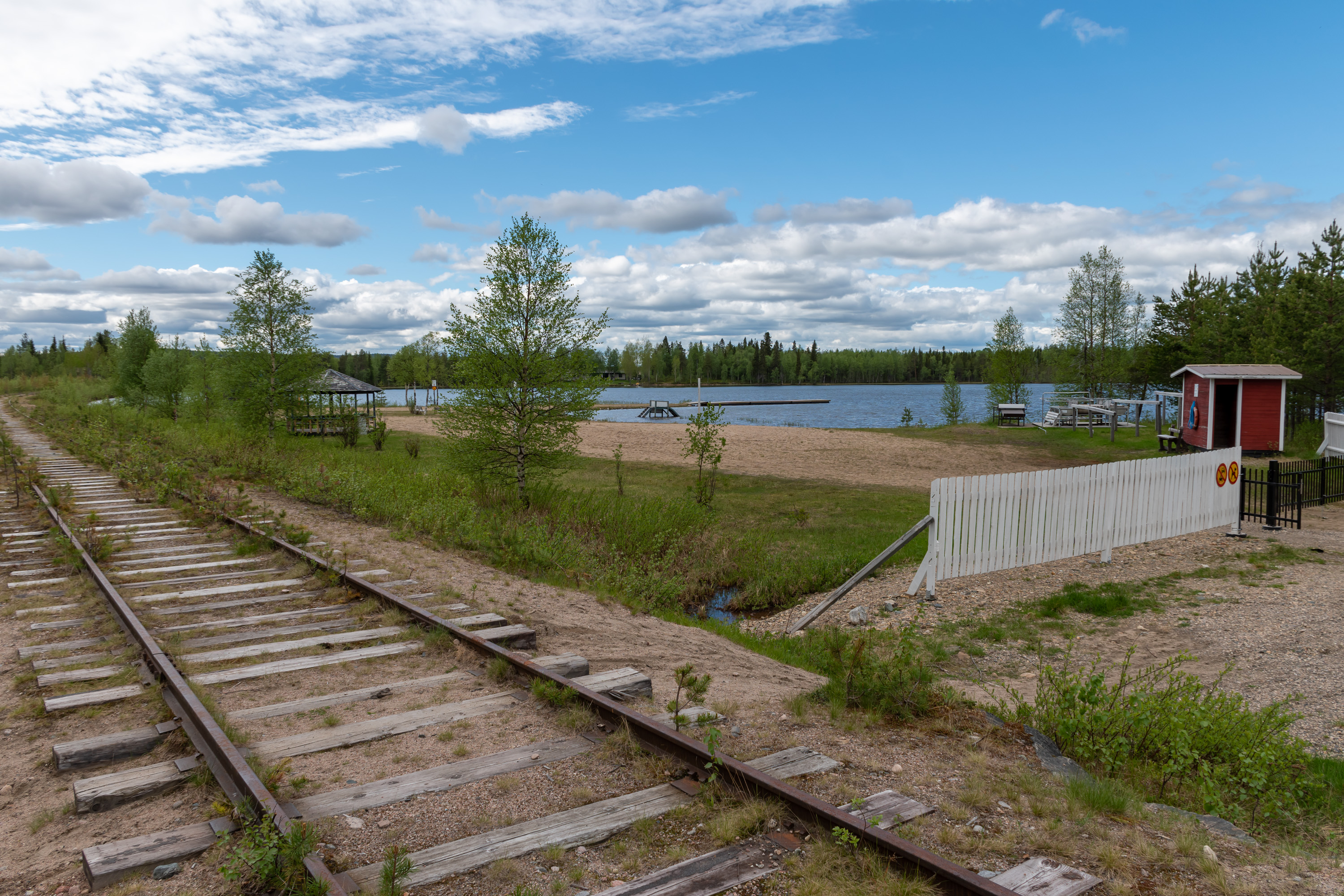 17. Чуть восточнее села за железной дорогой — небольшой пляж. Надо же и жителям Саллы где-то купаться. Лето в Лапландии, как известно, ничуть не холоднее, чем на юге Финляндии (или в средней полосе России), только короче. Зато зима и темная, и холодная — от моря далеко, климат континентальный. Большая часть Саллы, включая центральное село, расположена уже за Полярным кругом.