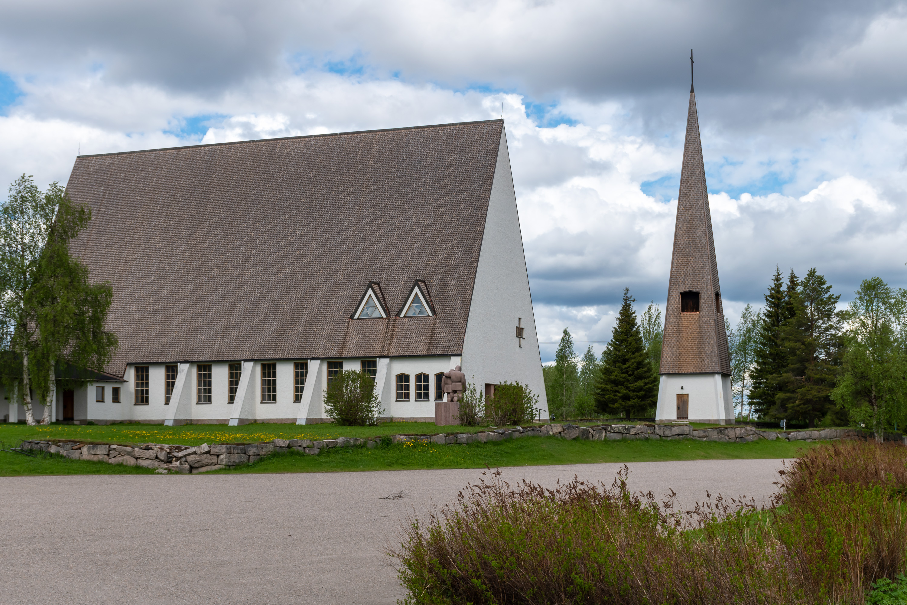29. В Хаутаярви есть собственная деревенская церковь, построенная в 1963 году, что для маленькой деревенской церкви довольно поздний период (их строили обычно раньше, в начале 20 или в 19 веке, в деревнях, откуда по тем временам было слишком далеко и муторно ехать до главной приходской церкви). И очень интересный модернизм — деревянный! Я думал, что бетон, по форме и цвету здания, а присмотреться — нет, дерево. Согласно Википедии, церковь относилась к некоему церковному приграничному округу (rajaseutupiiri), но таковые приграничные округа были ликвидированы в начале 2000-х, и я даже не смог толком понять, что это вообще за сущности были.