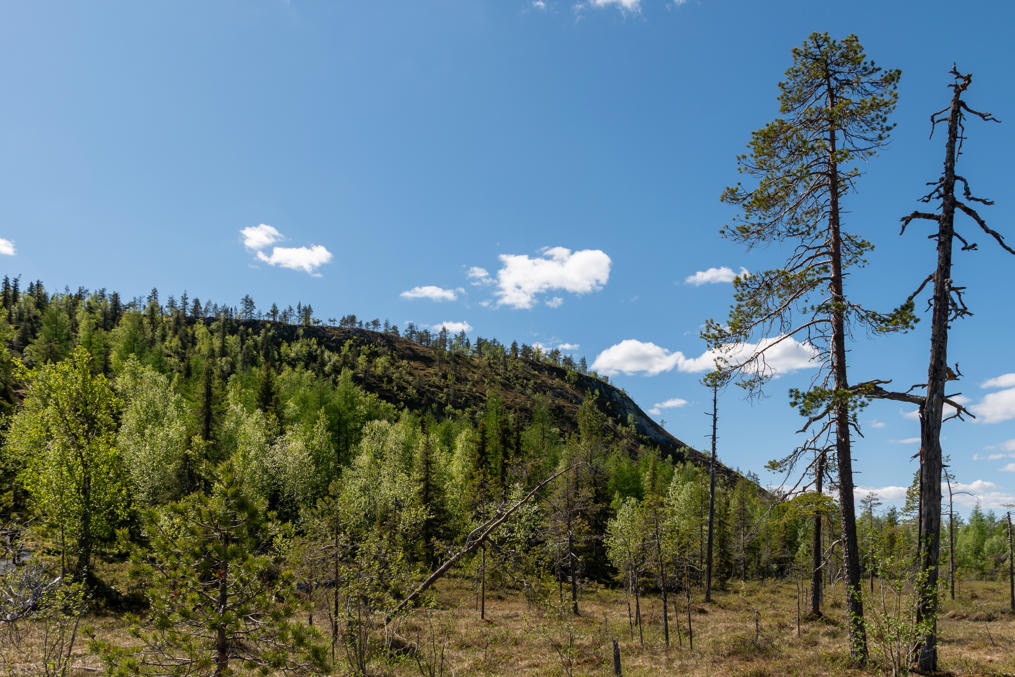 79. Вершина Валтаваары уже похожа на тундры — тунтури — лапландские лысые сопки. Но все-таки деревья есть, хоть это в основном и редкая чахлая горная береза. Похоже выглядит вершина Рийситунтури, в одноименном национальном парке в 30 км западнее; несмотря на название, и она тоже тундрой, строго говоря, не является — тоже не выходит за линию деревьев.