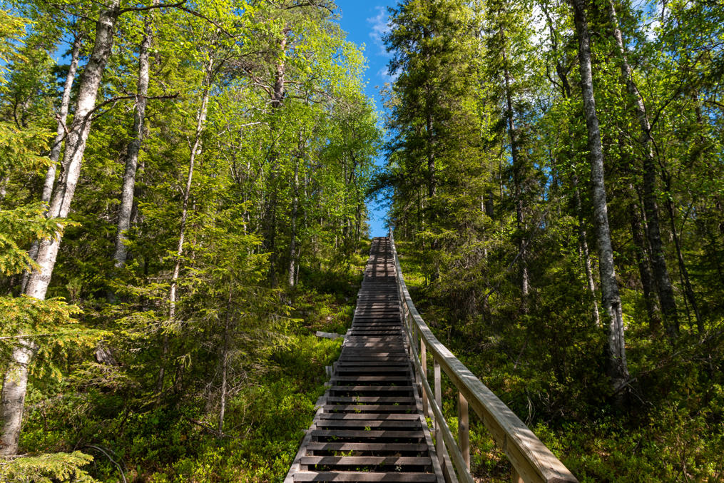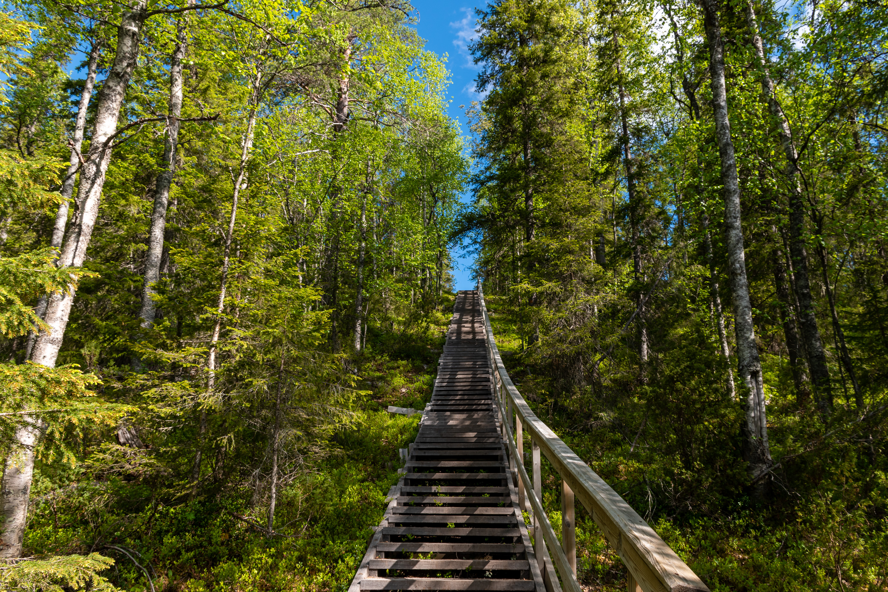 60. Лестница на Ваттуваару. Эта небольшая, но крутая горка возвышается на 60 м над хижиной и речкой.
