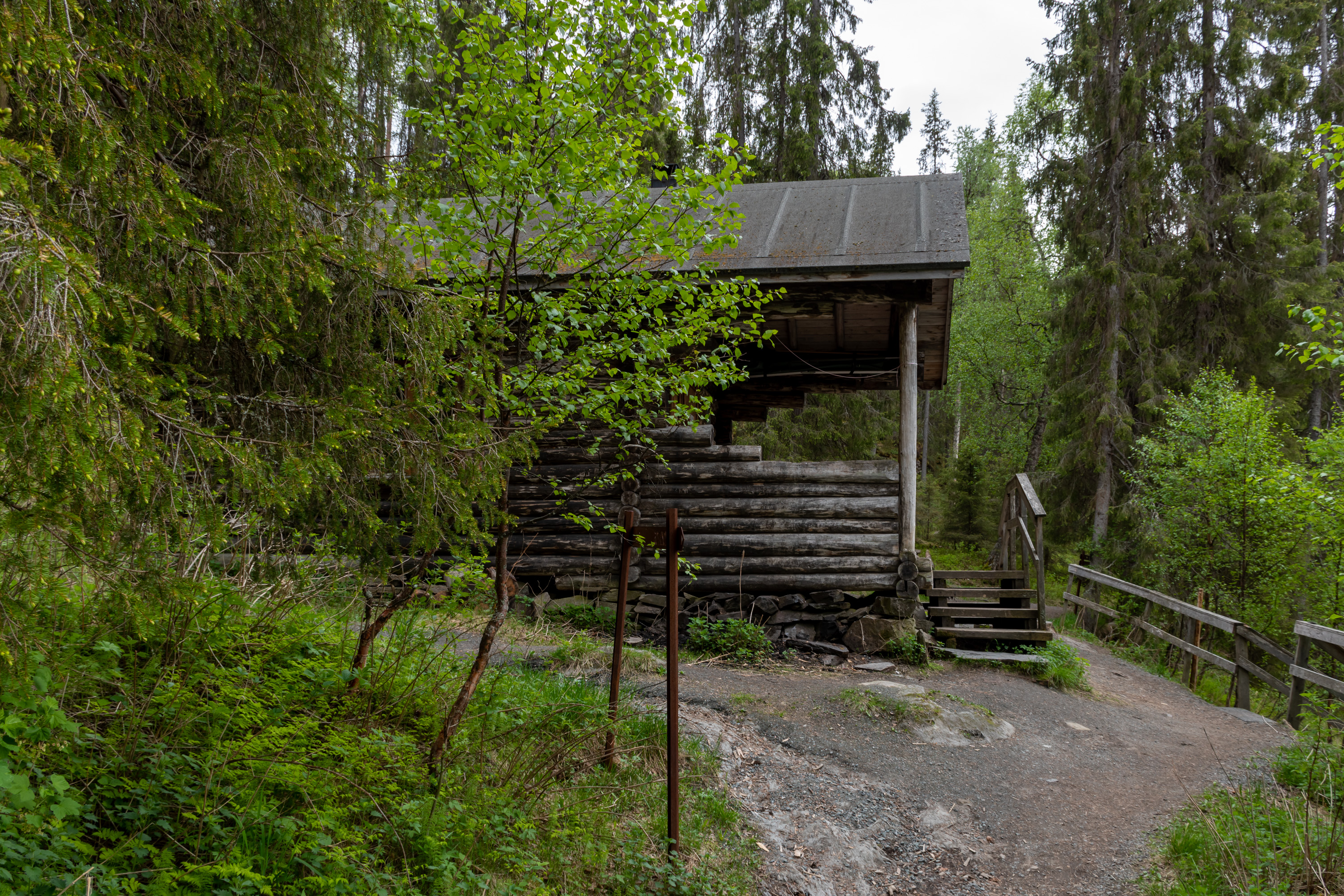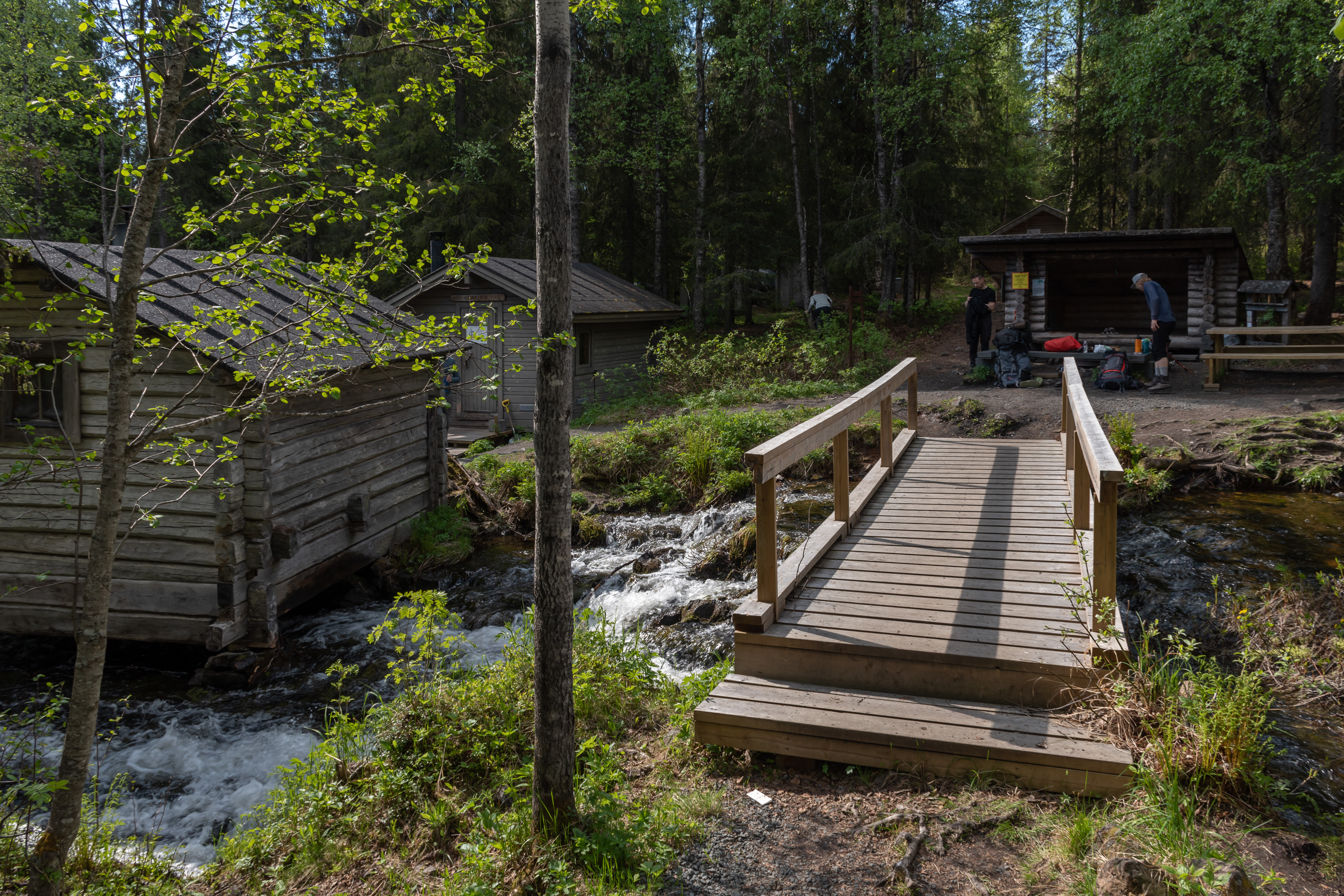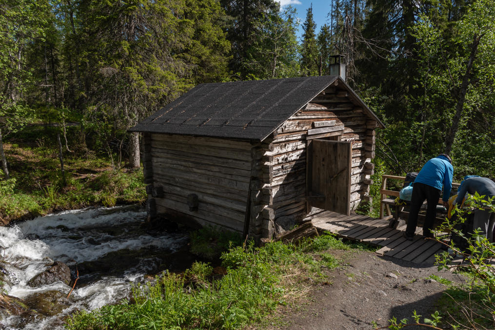 56. Хижин на самом деле здесь две, обе довольно маленькие. Изначальная хижина — это бывшая водяная мельница, построенная прямо над порогами мелкой речки Поронтимайоки. Атмосферно, наверное, спать. Вторую хижину построили уже потом, специально для туристов.