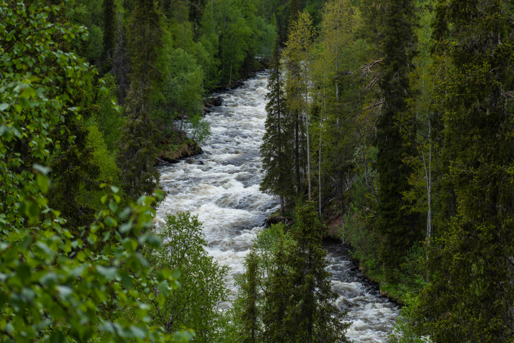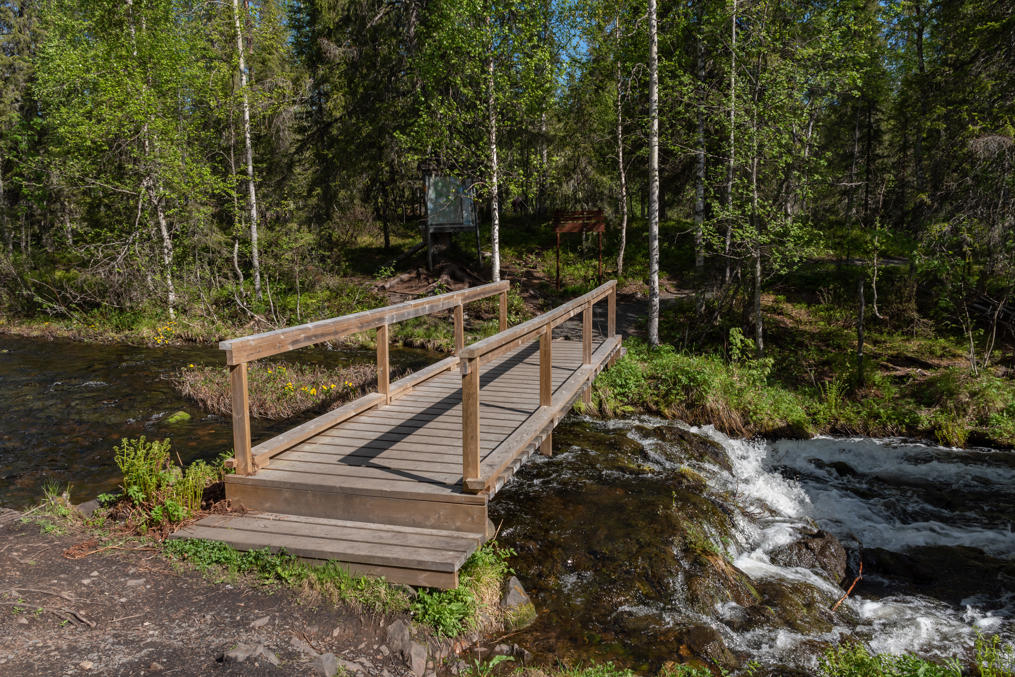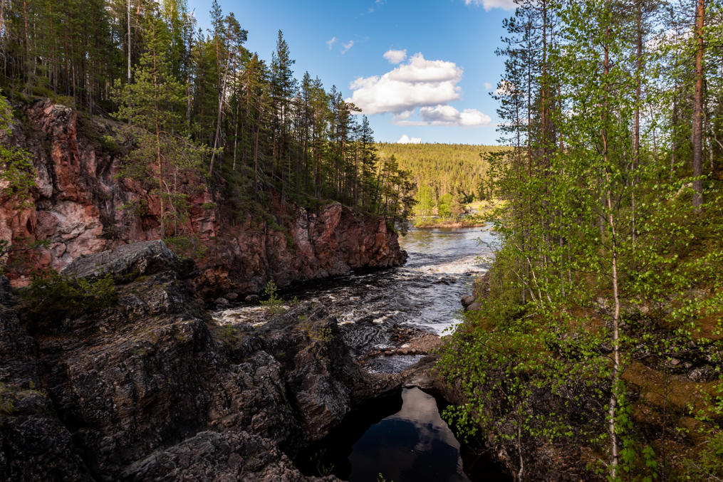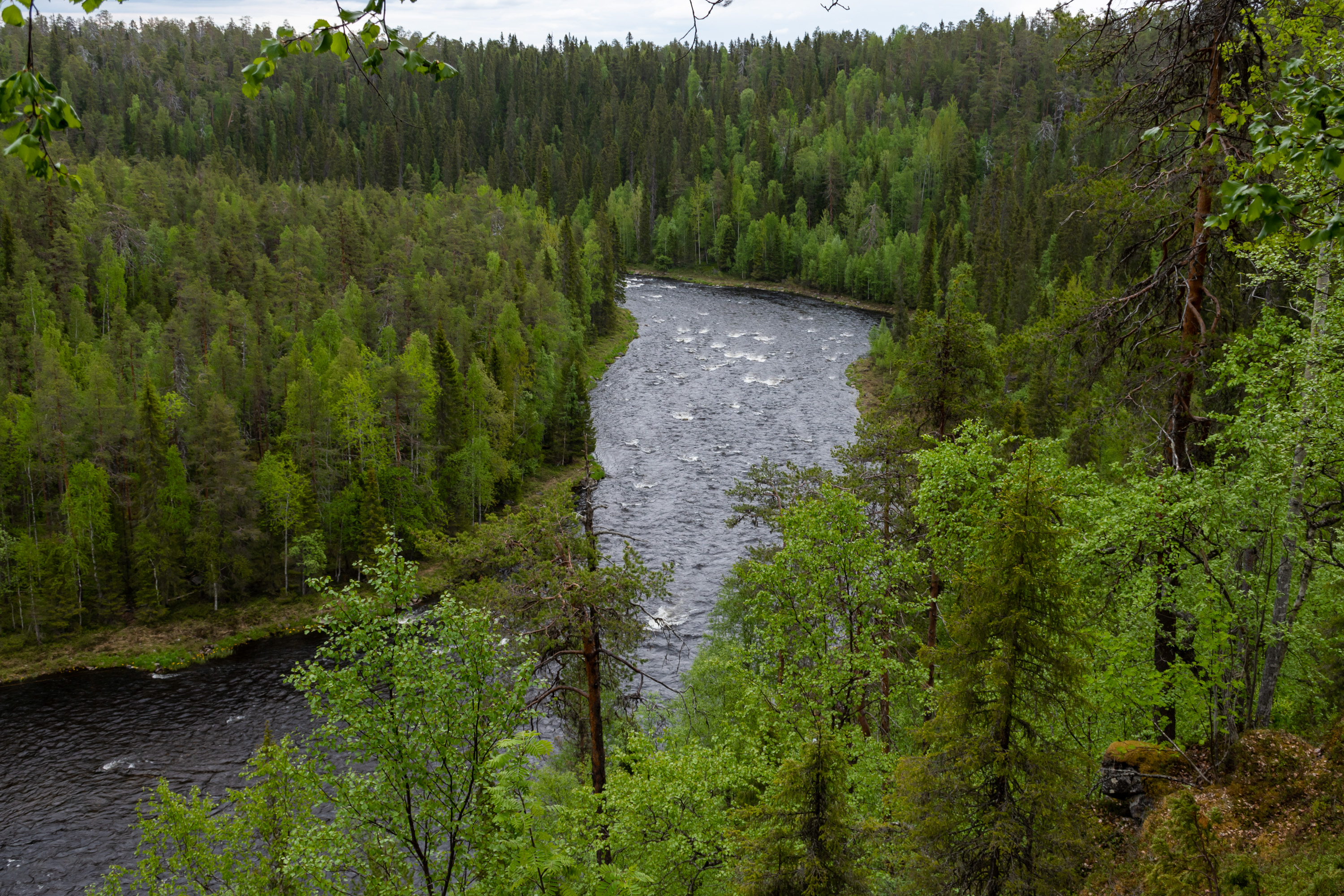 36. В отличие от многих других рек Северной Финляндии, Киткайоки и Оуланкайоки (и почти все их притоки) сумели избежать строительства ГЭС. Общественная кампания за спасение этих рек, так называемая война за пороги Куусамо (Kuusamon koskisota), под предводительством местного писателя и журналиста Рейно Ринне (Reino Rinne), шла в 1950-60-х и в конце концов увенчалась успехом. Если бы здесь построили ГЭС, все водопады тут были бы уничтожены — как они уже и так уничтожены почти везде в Финляндии, по крайней мере вблизи от цивилизации — и на этом национальный парк и Медвежье кольцо в принципе можно было бы и закрывать, какая Оуланка без водопадов?